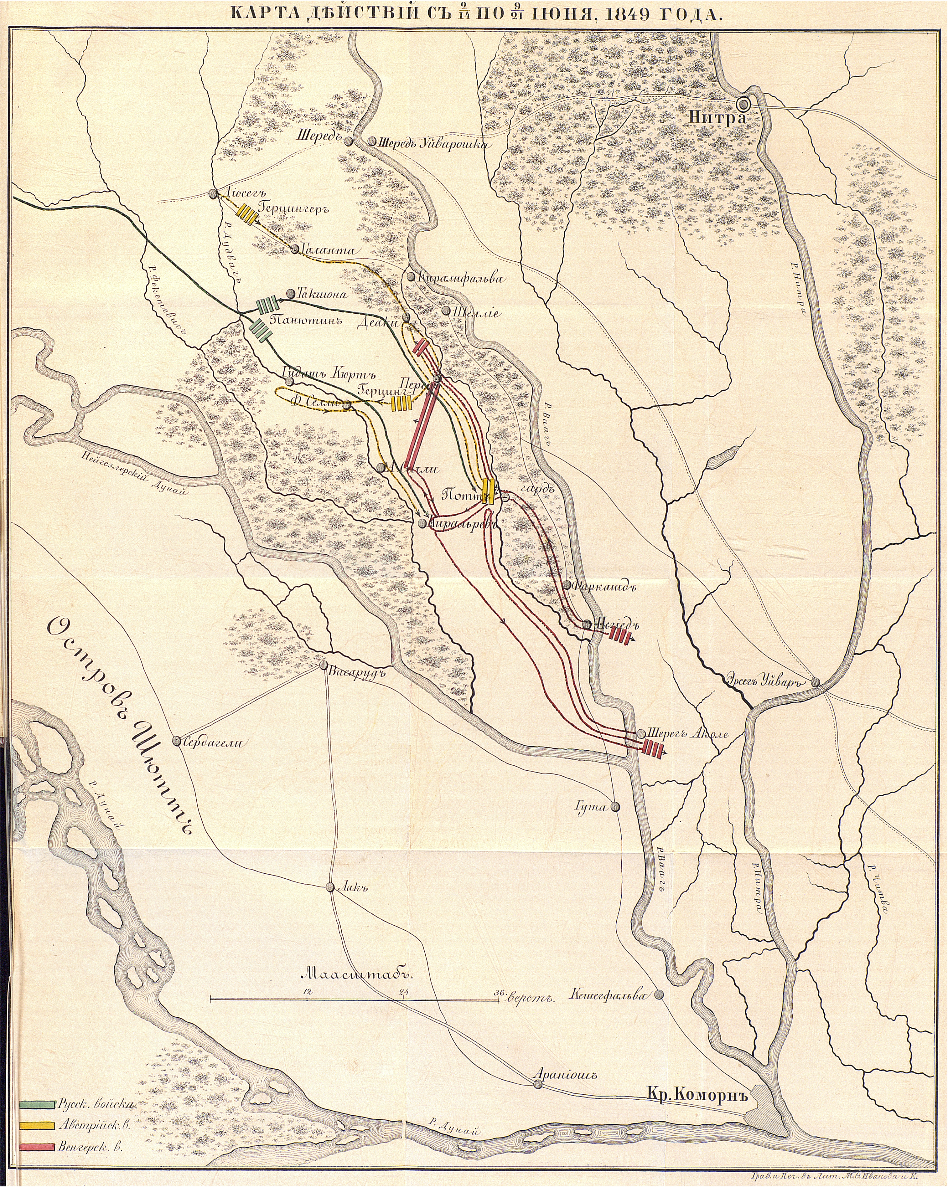 Карта действий с 2 по 9 июня 1849 года