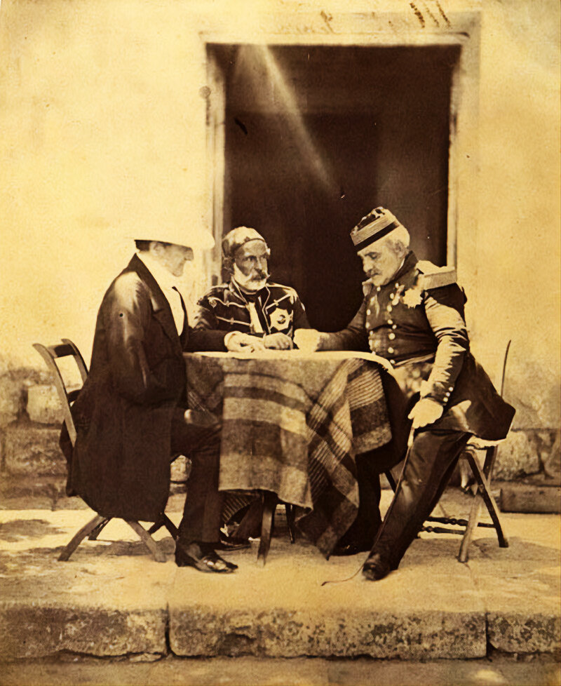 Слева направо лорд Раглан, Омер-паша, генерал Ж.-Ж. Пелисье