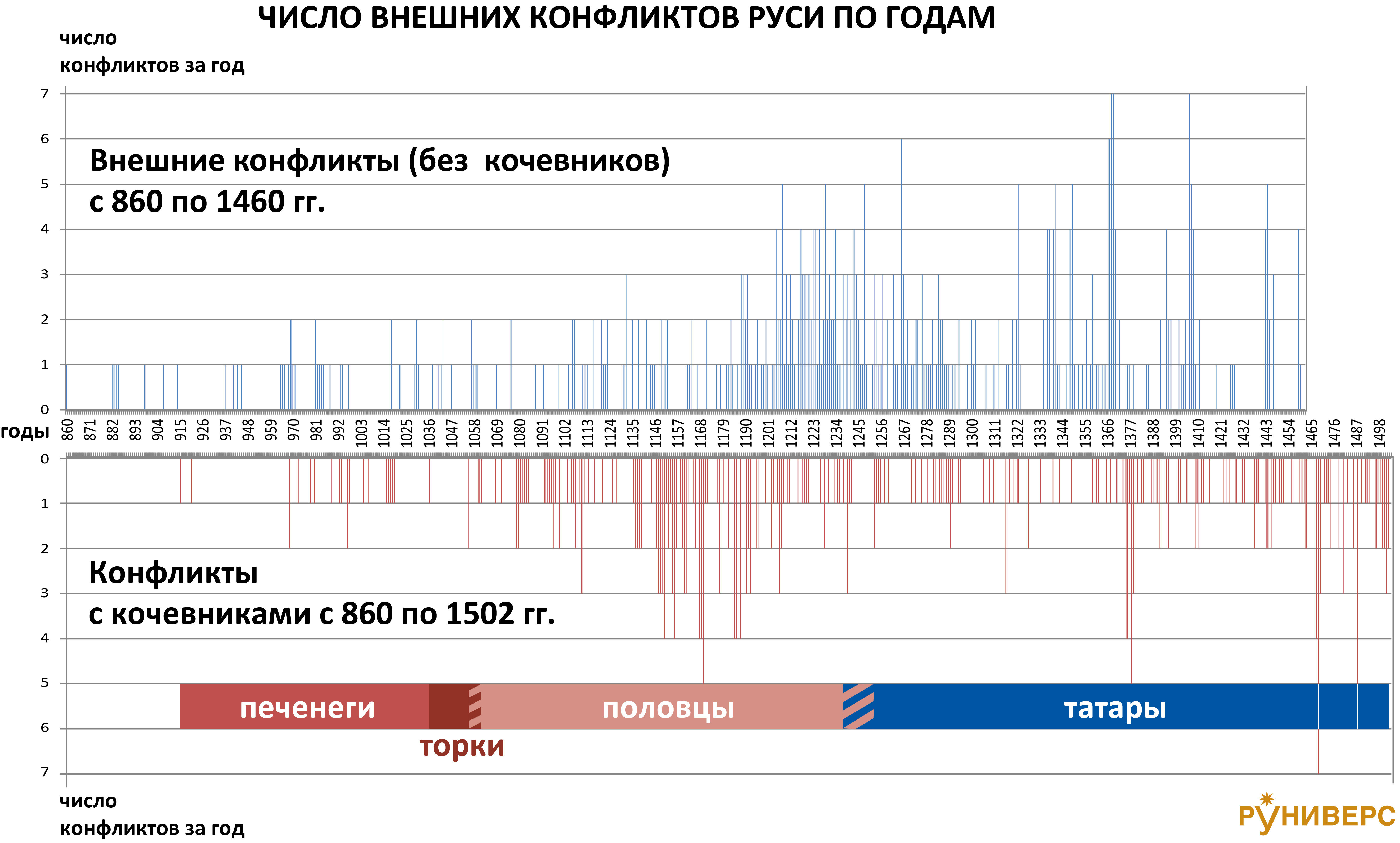 Сводная схема конфликтов России с 860 по 1502 гг.