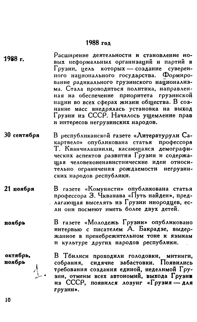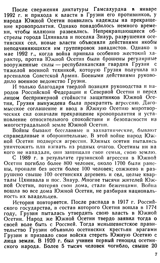 Целью «Хроники событий Грузинской агрессии» является восстановление хронологии развития политических процессов и событий, происшедших в Южной Осетии и вокруг нее в 1988-1992 годы. В ней отражены основные факты, важнейшие решения, даты наиболее тяжелых событий. Последовательный обзор этих событий поможет проследить пути к становлению Республики Южная Осетия, которая родилась в ходе отстаивания народом Южной Осетии своей независимости, жизни и достоинства.