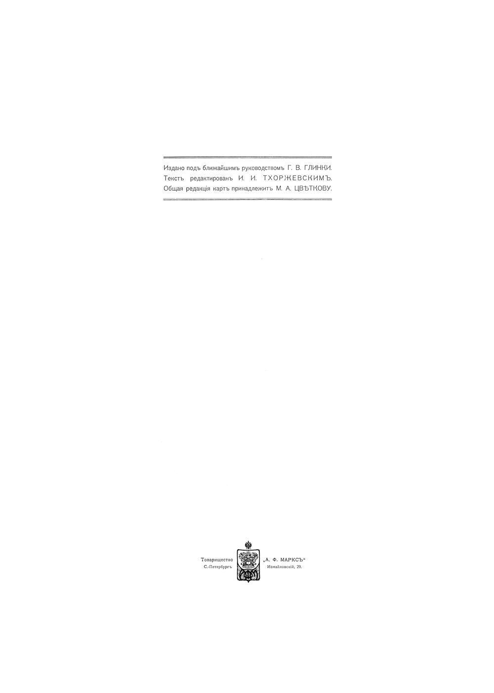 Настоящий атлас как бы повторяет в основных своих чертах наши старинные, времен царя Алексея Михайловича, географические издания. И тогда составленные с возможной для того времени полнотой и тщательностью карты («Большой Чертеж», «Чертеж Сибирской Земли») сопровождались подробным объяснительным текстом («Книга к Большому Чертежу»). Таким образом, настоящий атлас – это современный «чертеж» наших азиатских владений, к которому приложена «книга».