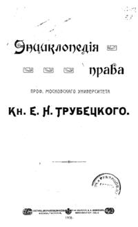 Е. Н. Трубецкой учился на юридическом факультете Московского университета (1881 – 1885) и одновременно изучал историю философии. После окончания университета он становится приват-доцентом Юридического лицея в Ярославле. Здесь и в дальнейшем в Московском университете читает курсы по энциклопедии права и истории философии права. Курс энциклопедии права включает предварительные сведения о праве, его отделах, методах его изучения. Он создает некоторый философский базис для научной работы и синтезирует современные общие учения о праве как основание для изучения самостоятельных правовых дисциплин.
