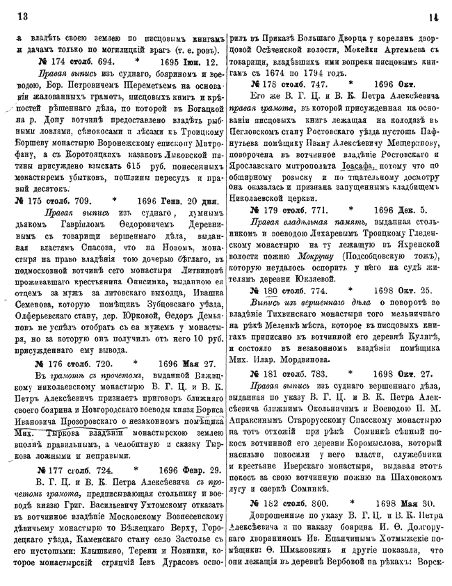 Собрание редчайших документов, составленное в 1860-1863 гг. А. Федотовым-Чеховским, ординарным профессором по кафедре гражданского права в университете св. Владимира в Киеве. Содержит акты, регулирующих главным образом древнерусское судопроизводство, а также сведения о феодальном землевладении, организации государственного управления, списки представителей государственной администрации. Включает правые, жалованные, разъезжие, деловые и др. грамоты.