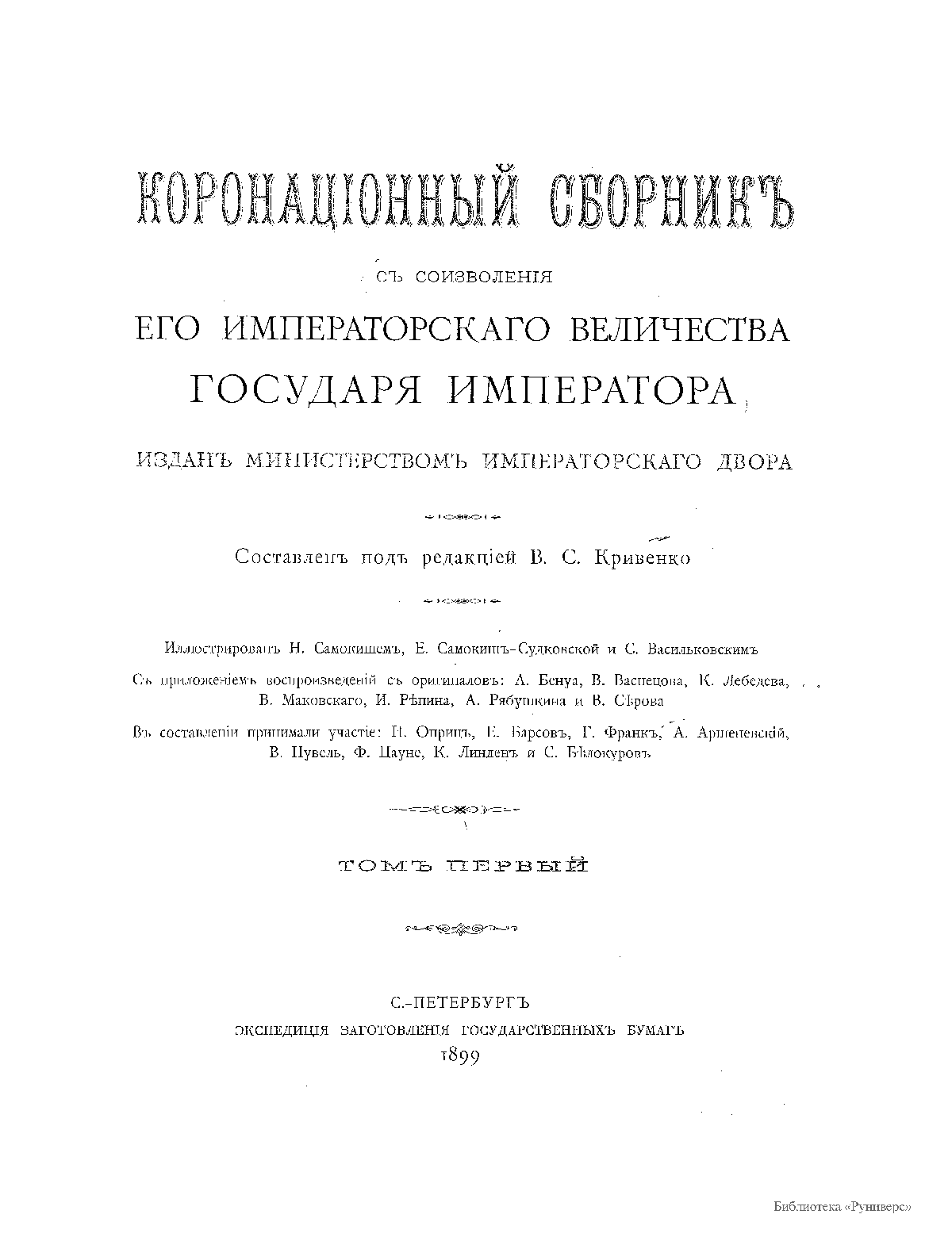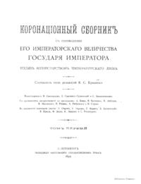 Коронацiонный сборникъ. Съ соизволенiя Его Императорскаго Величества Государя Императора. Томъ первый