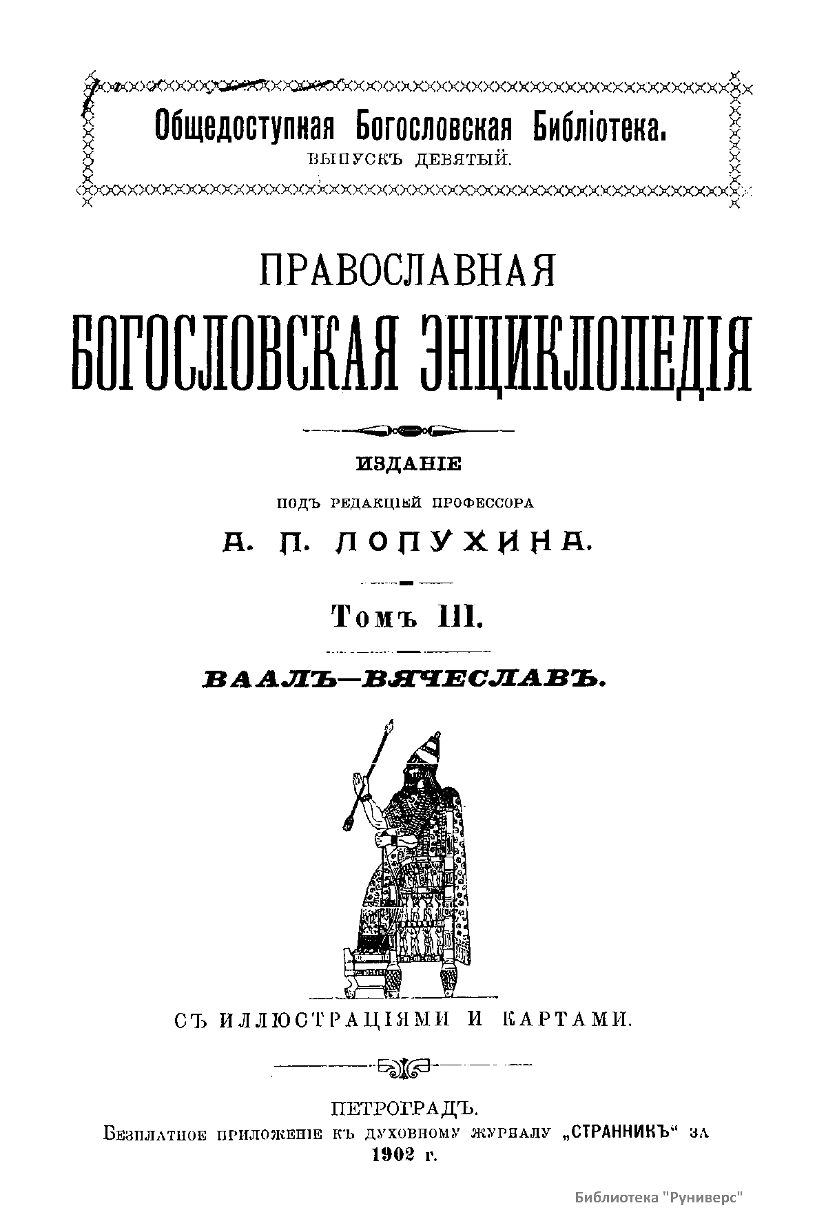 Православная богословская энциклопедiя. Томъ III. Ваалъ-Вячеславъ