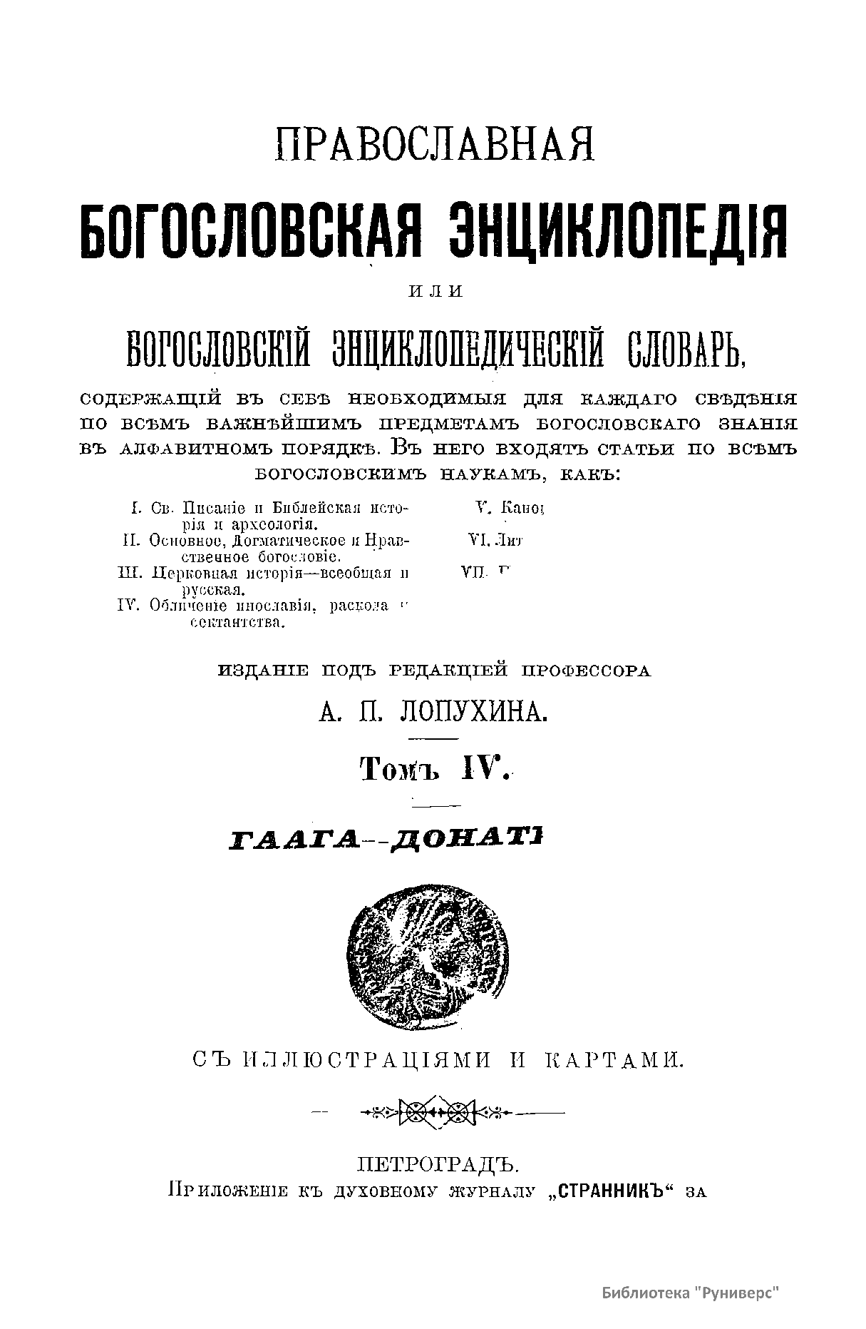 Православная богословская энциклопедiя. Томъ IV. Гаага-Донатисты