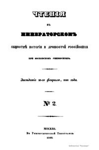 Чтенiя въ Императорскомъ Обществѣ Исторiи и Древностей Россiйскихъ при Московскомъ Университетѣ. Годъ первый. №2