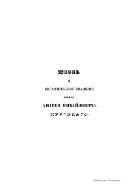Жизнь и историческое значенiе Князя Андрея Михайловича Курбскаго