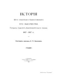 Исторiя 50-го пѣхотнаго Бѣлостокскаго Его Высочества Герцога Саксенъ-Альтенбургскаго полка 1807-1907 гг.