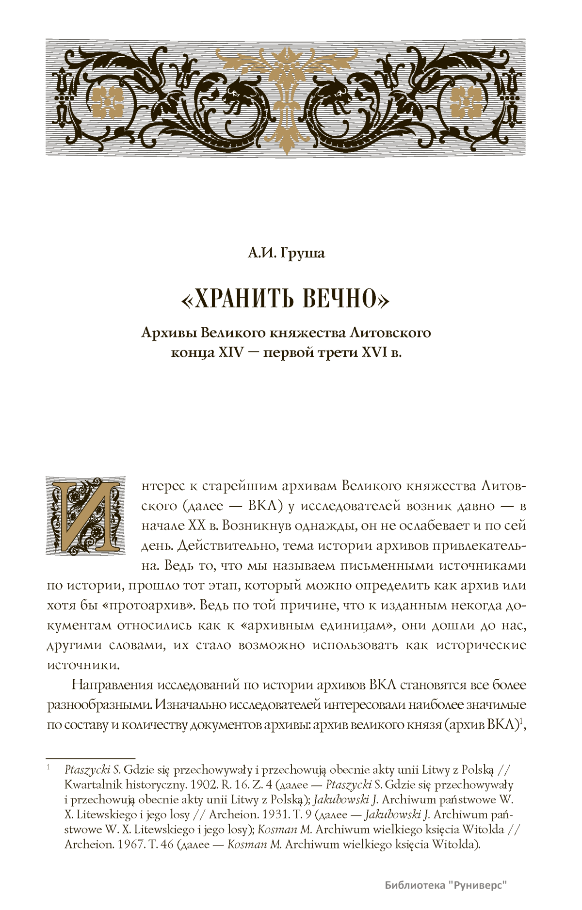 XIII–XVI столетия принципиально изменили карту Восточной Европы. Появление на ее просторах улуса Монгольской империи — Золотой Орды запустило процесс выдвижения новых политических центров. Одним из них стала Москва, но рядом с ней выросла другая Русь — Великое княжество Литовское и Русское, большая часть населения которого называлась «русскими» или «русинами» — но не считала себя «московитами». В средневековой Европе Литва сочетала воинственную центральную власть князей Гедиминовичей с широкими автономными правами отдельных земель и получила уникальный опыт конфессиональной и национальной терпимости. В номере собраны работы исследователей, с разных сторон изучав-ших своеобразие литовской модели государственности и факторы, способствовавшие дивергенции систем общественно-политического устройства двух крупнейших государств Восточной Европы — Великого княжества Литовского и Московского царства. Редакция «Исторического вестника» предоставила возможность высказать свои позиции не только российским историкам, но и их коллегам с Украины, Белоруссии, Литвы и Польши — тех стран, которые считают себя преемниками средневековой державы Гедиминовичей. А. Дубонис (Литва) показал, как грабительские походы литовских дружин превратились в завоевание соседних земель, и выделил две различные модели литовской экспансии — военную и мирную. Статья С.В. Полехова (Россия) посвящена восстанию в Смоленске в 1440 г. в контексте в целом успешного процесса интеграции Смоленщины: к началу XVI в. смоленские бояре, мещане и даже «черные люди» прочно ассоциировали себя с Великим княжеством Литовским. Е.В. Русина (Украина) попыталась оценить, как отвечает современная историография на вопрос: почему на руинах Древнерусской державы одновременно возникли столь непохожие друг на друга великие княжества Московское и Литовское, имевшие разную логику исторического развития? Д. Шульц и Р. Яворский (Польша) представили обзор трудов польских историков, посвященных ключевым в польско-литовских отношениях событиям — Кревскому акту 1385 г. и Люблинской унии 1569 г. А.И. Груша (Белоруссия) постарался обобщить сведения и выявить специфику (децентрализацию и подвижность) различных видов архивов Великого княжества Литовского, рассеянных ныне по архивохранилищам нескольких государств. А.В. Казаков (Белоруссия) проследил судьбу московского выходца XVI века И.Т. Юрлова, чей жизненный путь можно считать примером успешной интеграции эмигранта в социум Великого княжества Литовского в условиях благоприятного для москвичей «социокультурного климата» этого государства. В.А. Воронин (Белоруссия) оценил, как развивались отношения между католиками и православными в Великом княжестве в конце XIV — середине XVI в., и показал, что католической элите не удалось добиться абсолютного превосходства. До серьезных конфликтов на религиозной почве дело не доходило — в обществе были выработаны эффективные механизмы разрешения возникавших на конфессиональной почве противоречий. Д. Шульц (Польша) изучил влияние московско-литовских войн на процесс объединения Великого княжества с королевством Польским. Завершает номер рецензия С.В. Полехова на последнее издание документов Городельской унии Литвы и Польши 1413 г., посвящённая оценке реальных мер, направленных на интеграцию восточ