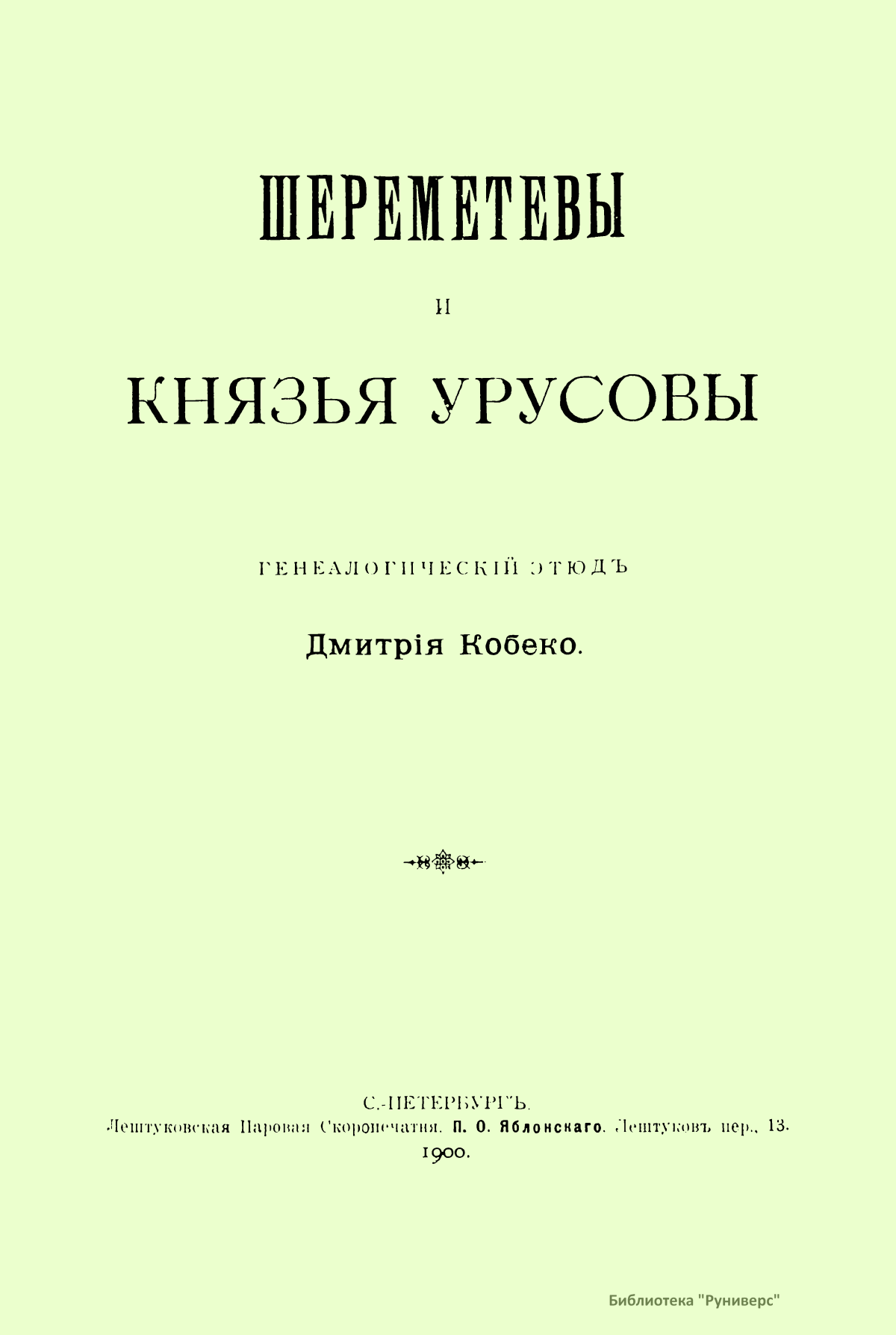 В настоящей брошюре автор показывает родственные связи Шереметевых и князей Урусовых.