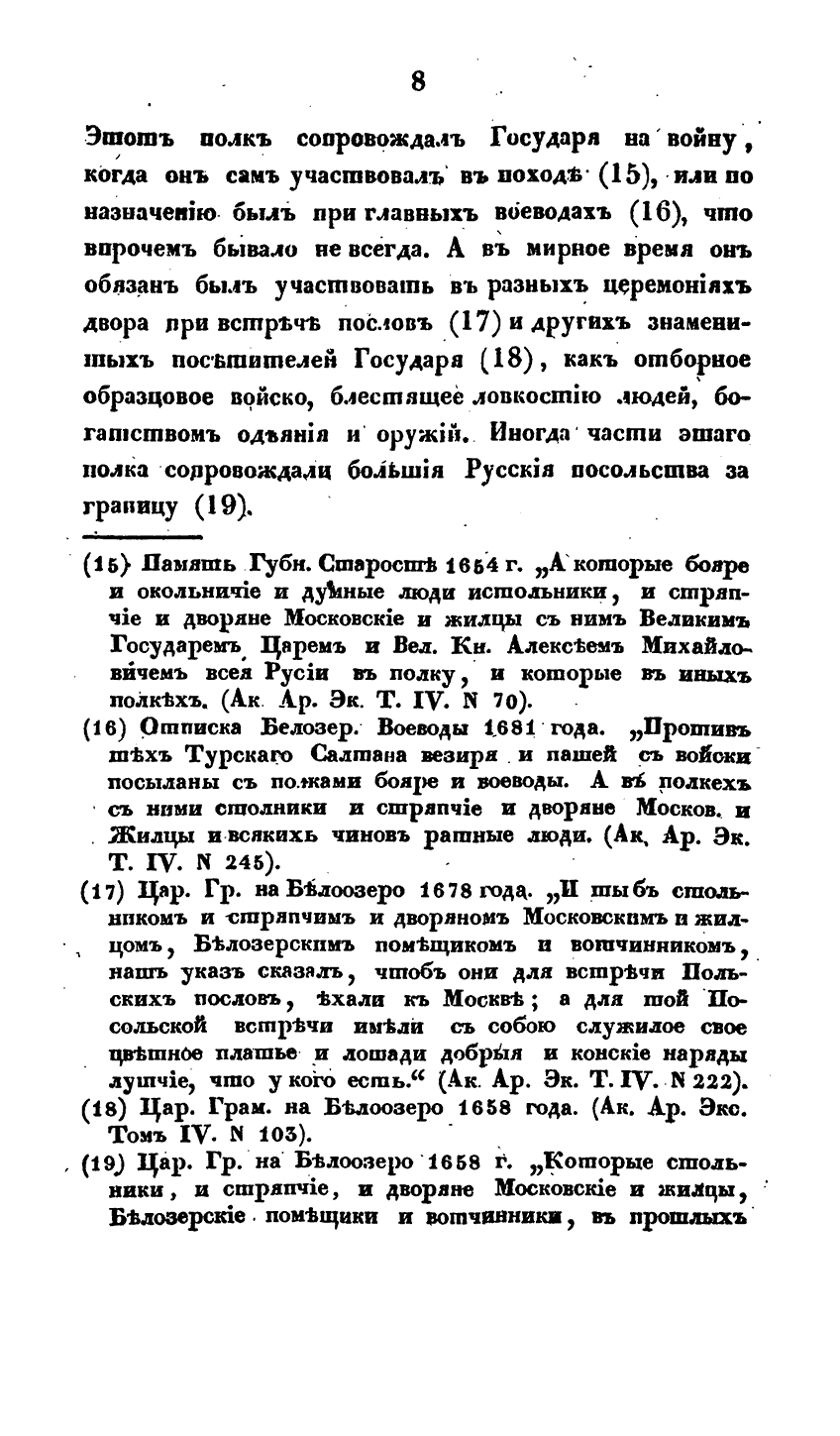 Наполненная массой архивных документов работа выдающего русского историка раскрывает многие малоизвестные детали устройства и жизни русской армии допетровского времени. Исследование И.Д. Беляева было признано современниками «во многих случаях основным, благодаря строго-научному и документально точному приему исследования военно-административного отдела»