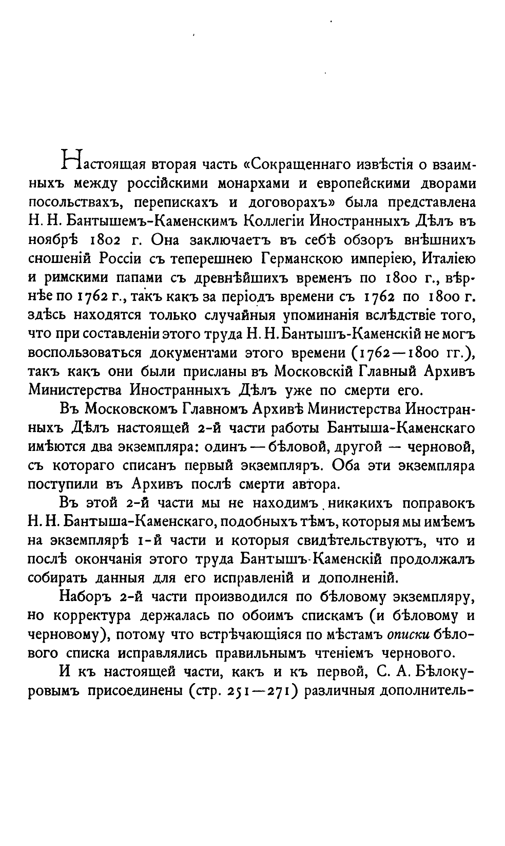 Посмертное издание ключевого труда бессменного (в течение почти 50 лет) археографа и управляющего Московским Главным архивом коллегии иностранных дел - систематизированное изложение документов о посольствах между российскими монархами и европейскими державами, дипломатической переписки и договоров.
