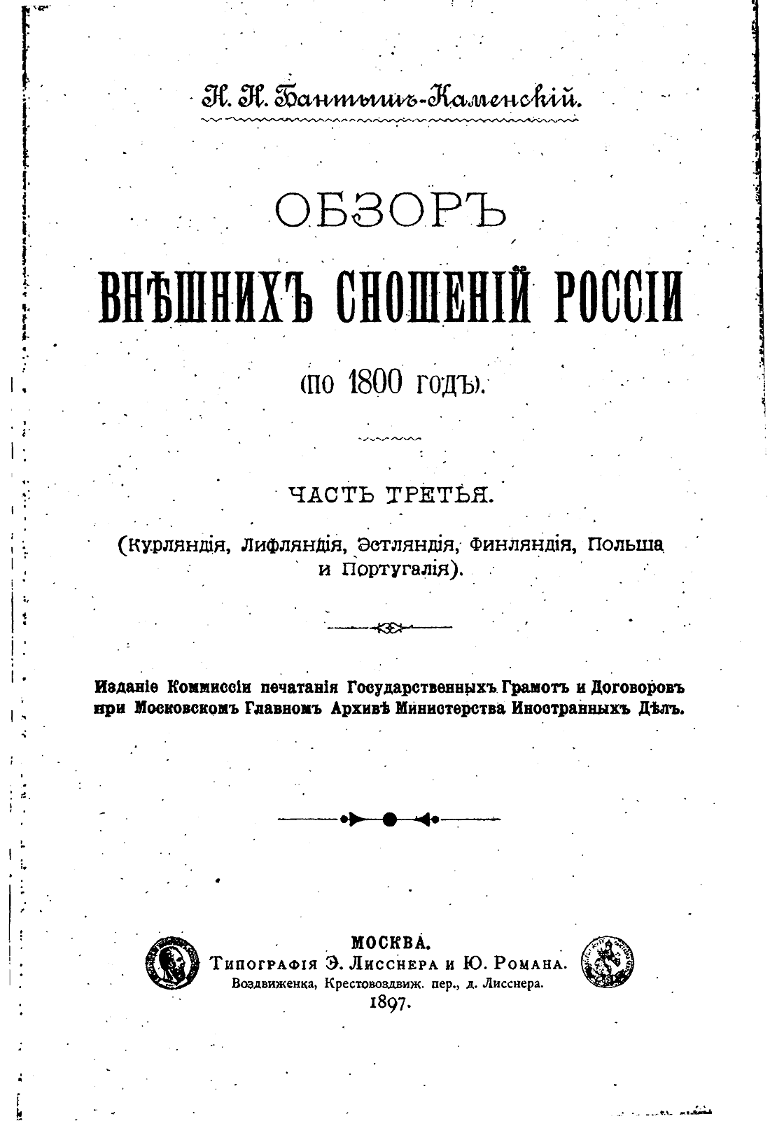 Обзор внешних сношений России (по 1800 год). Часть третья. (Курляндия, Лифляндия, Эстляндия, Финляндия, Польша и Португалия)