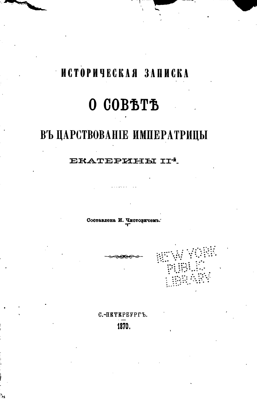 Историческая записка о Совѣтѣ въ царствованiе Императрицы Екатерины II