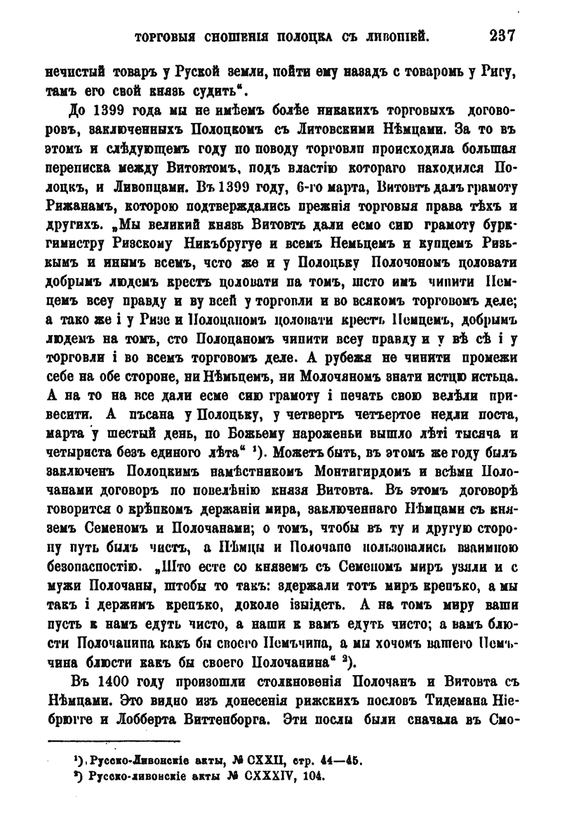 Торговые сношения Полоцка с Ливонией в XIV веке