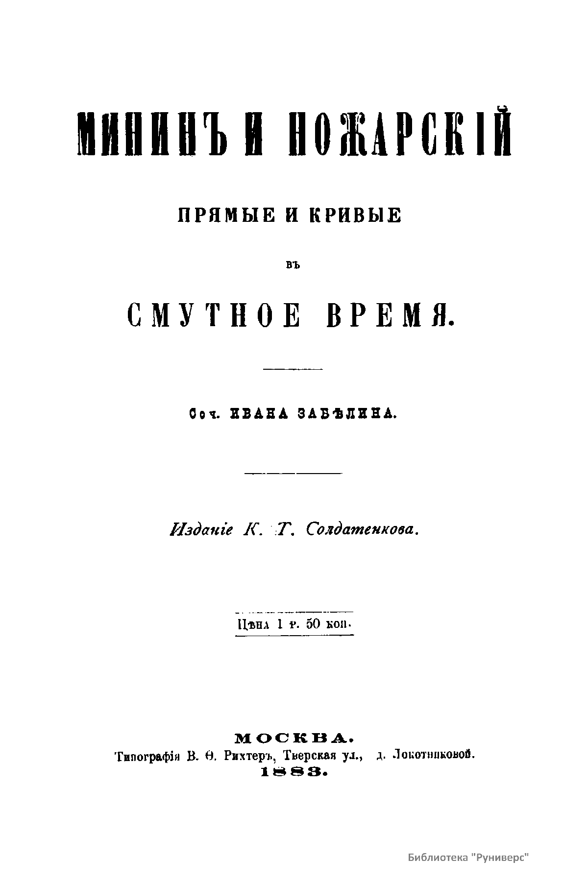 Мининъ и Пожарскiй. Прямые и кривые въ Смутное время