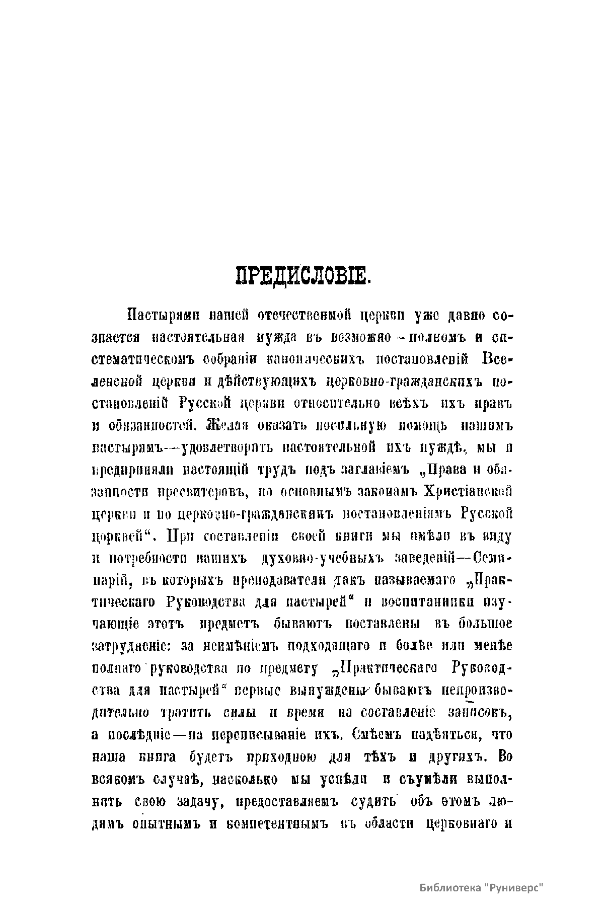 Права и обязанности пресвитеровъ по основнымъ законамъ Христiанской Церкви и церковно-гражданскимъ постановлениямъ Русской Церкви