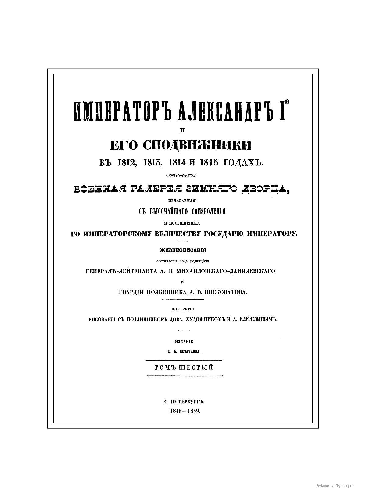 Императоръ Александръ I и его сподвижники въ 1812, 1813, 1814, 1815 годахъ. Томъ шестый