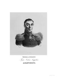 Александр Иванович Михайловский-Данилевский (1790–1848) — участник Отечественной войны 1812 г., генерал-лейтенант, военный историк и академик Санкт-Петербургской академии наук. Автор многих трудов по истории войн Российской империи. В последние годы своей жизни А. И. Михайловский-Данилевский был главным редактором «Военной галереи Зимнего дворца». Война 1812 г. получила название Отечественной и стала ярчайшей страницей российской истории и культуры. В Зимнем дворце столицы император Александр I повелел создать Военную галерею 1812 г. Ни в одном из дворцов Европы не существовало портретной галереи подобной той, что должна была украсить парадную резиденцию русских императоров. В Военной галерее Зимнего дворца должны были разместиться более 300 портретов, для исполнения которых в Петербург весной 1819 г. приехал известный английский живописец Джордж Доу (Даву). В создании портретной галереи принимали участие и русские художники — В. А. Голике, А. В. Поляков. Торжественное открытие галереи состоялось уже в царствование Николая I, в годовщину изгнания французов из России, 25 декабря 1826 г. Шеститомное издание «Император Александр I и его сподвижники в 1812, 1813, 1814 и 1815 гг.: Военная галерея Зимнего дворца, издаваемая с высочайшего соизволения» выходило на протяжении 1845–1849 гг. в петербургской типографии Карла Крайя. Издание объединило портреты и биографии российских генералов, участвовавших в Отечественной войне и заграничных походах. Главным редактором, а также составителем многих биографий стал А. И. Михайловский-Данилевский. Портреты с живописных оригиналов были гравированы на стали парижскими художниками Гюо и Долле. На страницах издания почетное место отведено императору Александру I, представлены биографии и портреты М. И. Кутузова, М. Б. Барклая-де-Толли, вел. кн. Константина Павловича, А. А. Аракчеева, П. П. Коновницына, Д. П. Немировского, Д. С. Дохтурова, П. И. Багратиона, Н. Н. Раевского, А. П. Ермолова, М. И. Платова и многих других героев. Труд А. И. Михайловского-Данилевского содержит обширный документальный и мемуарный материал, представляет подробное описание и анализ военных действий России и Франции на протяжении Отечественной войны 1812 г.