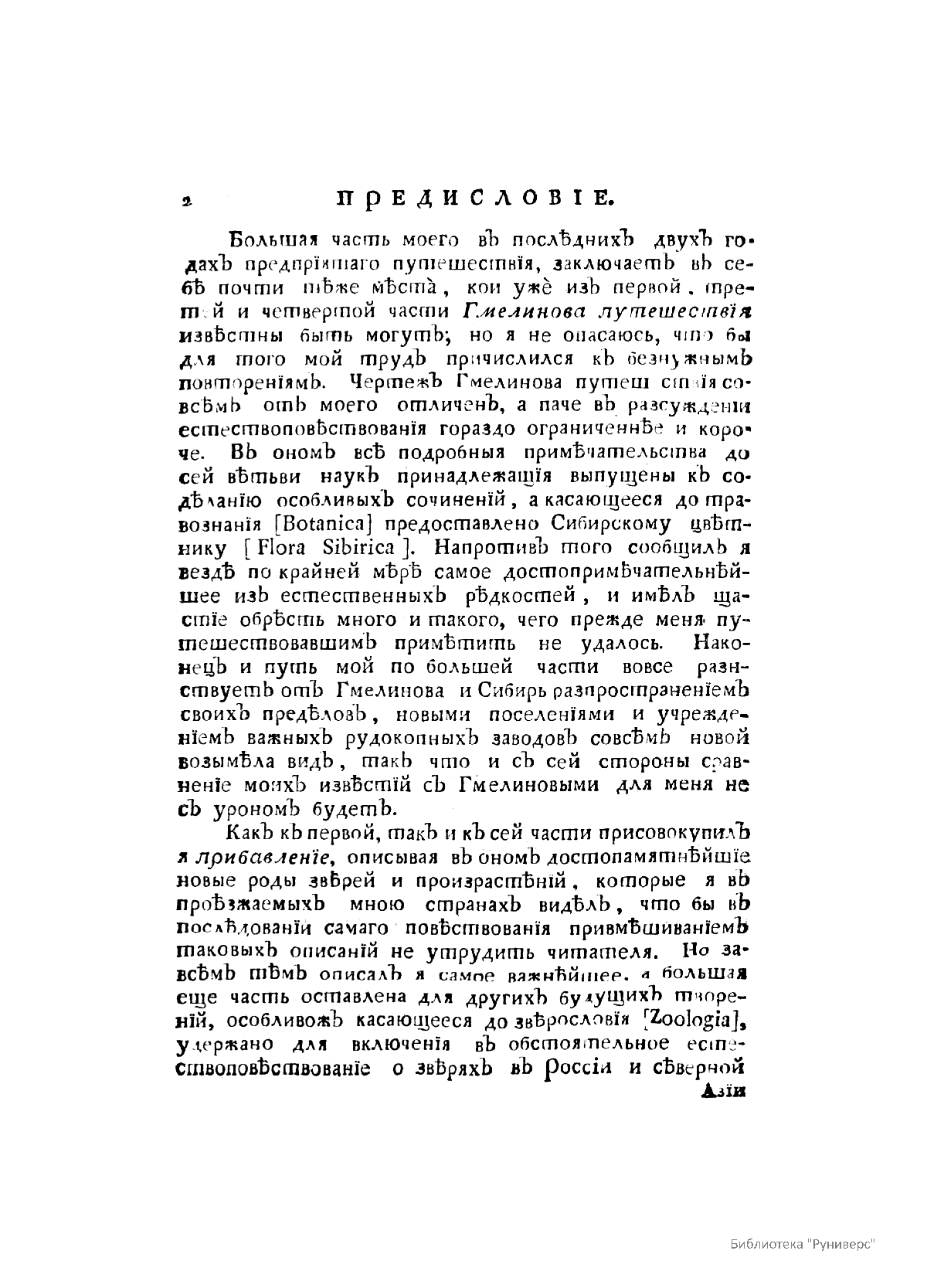 Научные труды П.С. Палласа выходили сначала на родном ему, немецком языке, а потом переводились на русский. Перевод с немецкого труда «Путешествие по разным местам Российского государства» в трех частях (пяти книгах) был выполнен Ф. Туманским и учеником Палласа, Василием Зуевым, состоявшим в его экспедиционном отряде. Впервые на русском языке «Путешествие…» было издано в 1773–1788 гг. в серии «Собрания, старающегося о переводе иностранных книг», учрежденной Екатериной II.