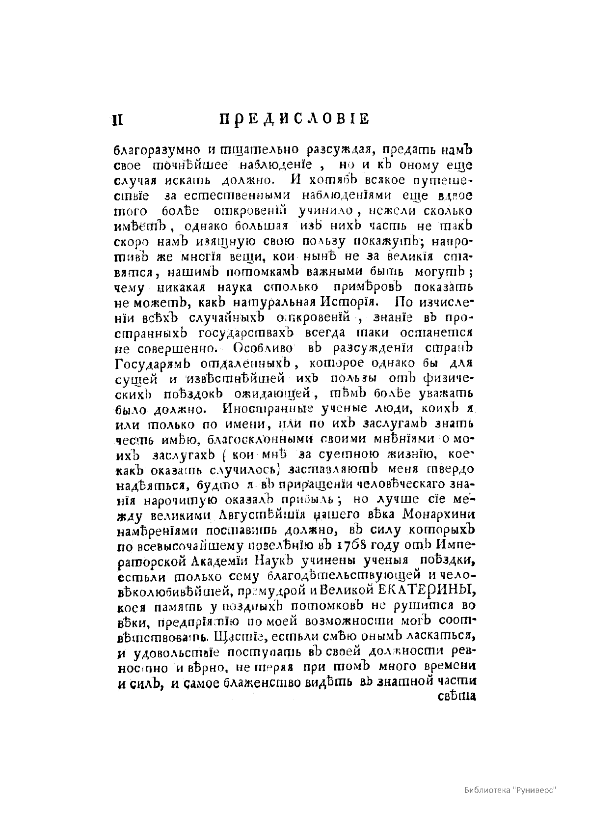 Петр Симон Паллас (1741–1811) – один из крупнейших естествоиспытателей XVIII века. Талантливый берлинский ученый в 1767 г. принял приглашение поступить на службу в Петербургскую Академию наук. Вскоре он начал подготовку к задуманной Академией наук комплексной экспедиции для исследования России в естественноисторическом, экономическом и культурном отношении. Палласу было поручено руководство одним из отрядов Оренбургской экспедиции. В 1768–1774 гг., в течение шести лет отряд Палласа провел выдающиеся исследования европейской части России, Урала и Сибири. На протяжении всего путешествия ученый вел подробный путевой журнал. Огромный фактический материал, собранный Палласом, лег в основу его главного труда – «Путешествие по разным местам Российского государства», который оставался настольной книгой многих поколений ученых. В предисловии к своему труду Паллас говорит о достоверности, как главном свойстве описания путешествий. П.С. Паллас сумел значительно поднять уровень знаний в различных областях науки: зоологии и палеонтологии, ботанике, географии, геологии, этнографии, языковедении, истории, административного и территориального управления в России.