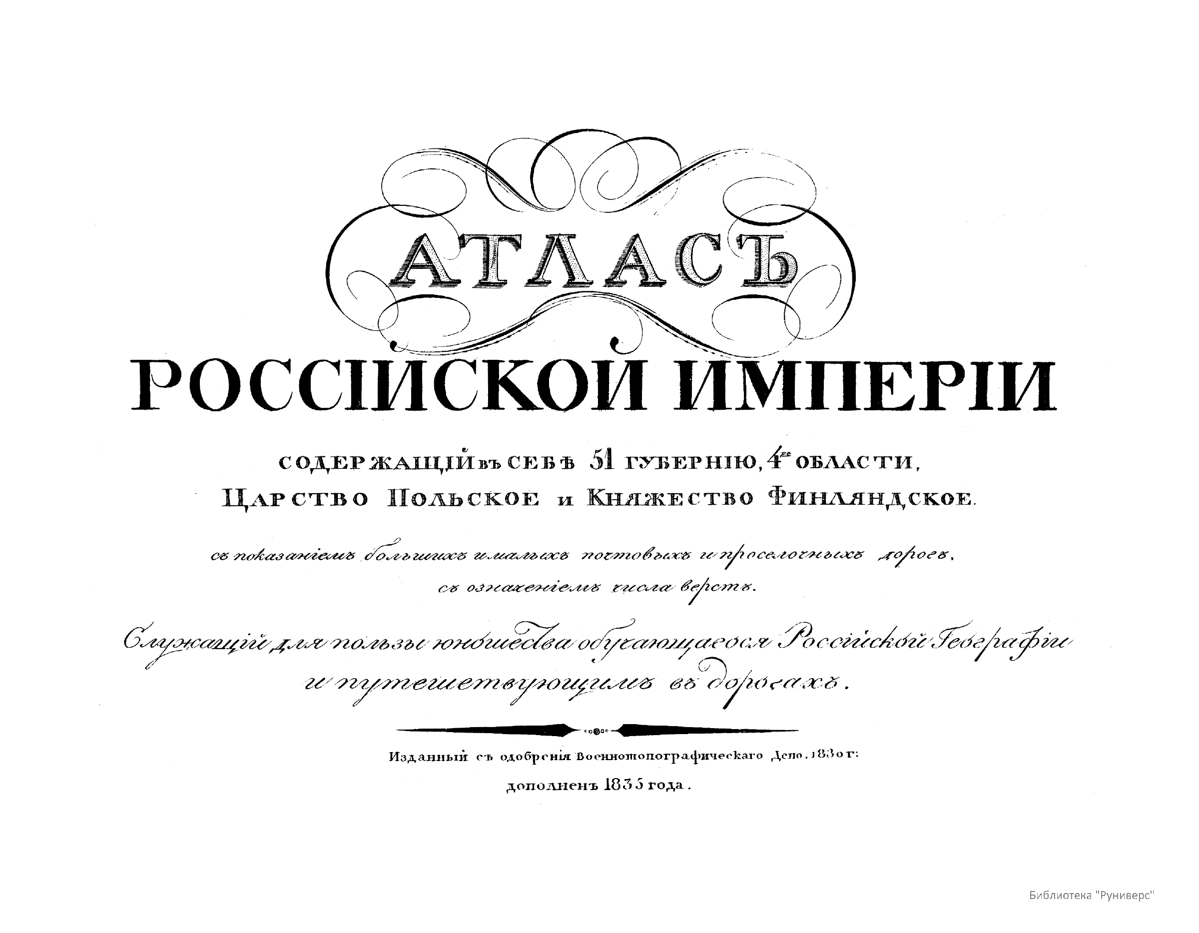 Атласъ Россiйской Имперiи, содержащiй в сѣбе 51 губернiю, 4 области, Царство Польское и Княжество Финляндское