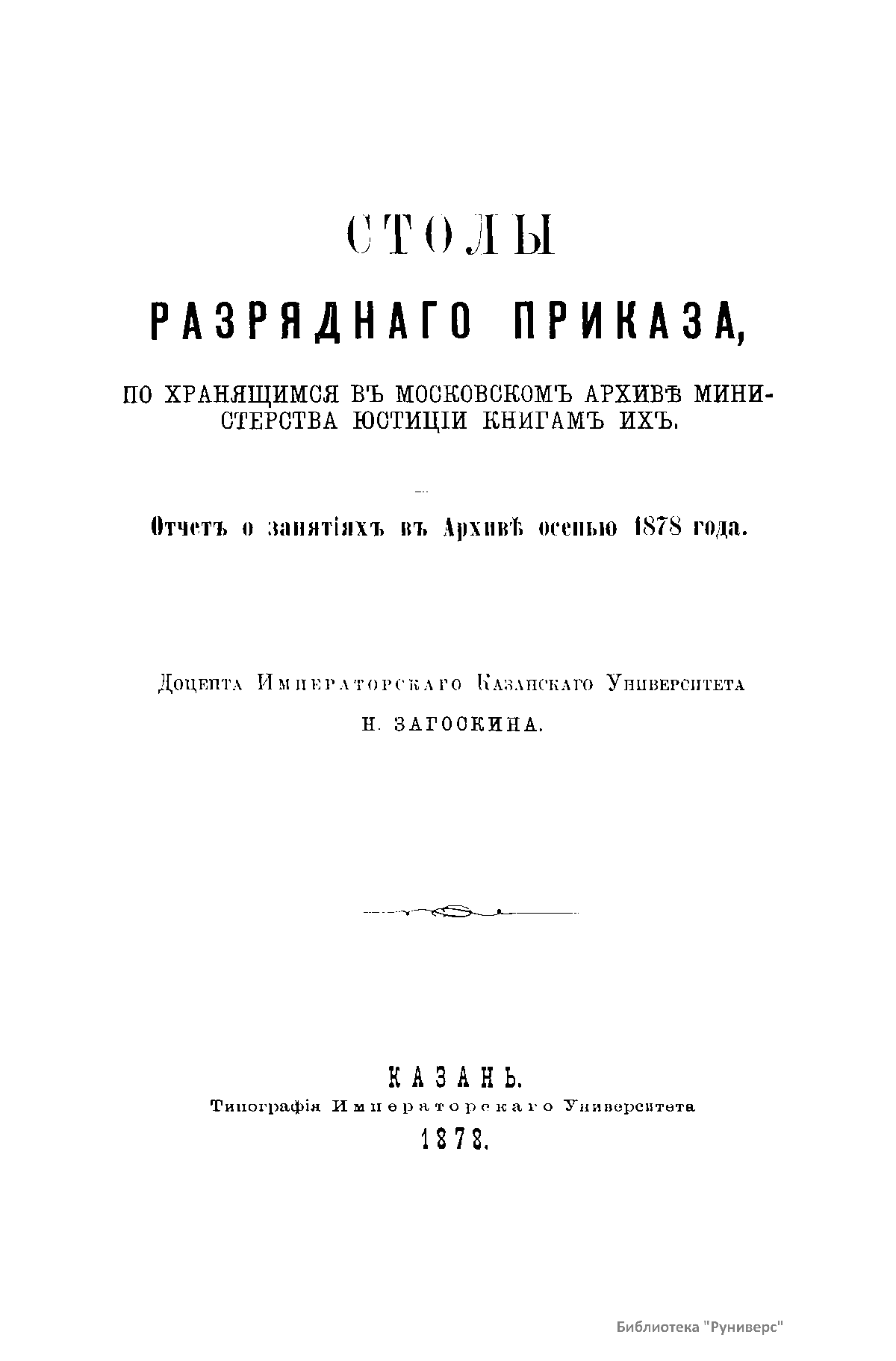 Столы разрядного приказа, по хранящимся в московском архиве министерства юстиции книгам их. Отчет о занятиях в Архиве осенью 1878 года