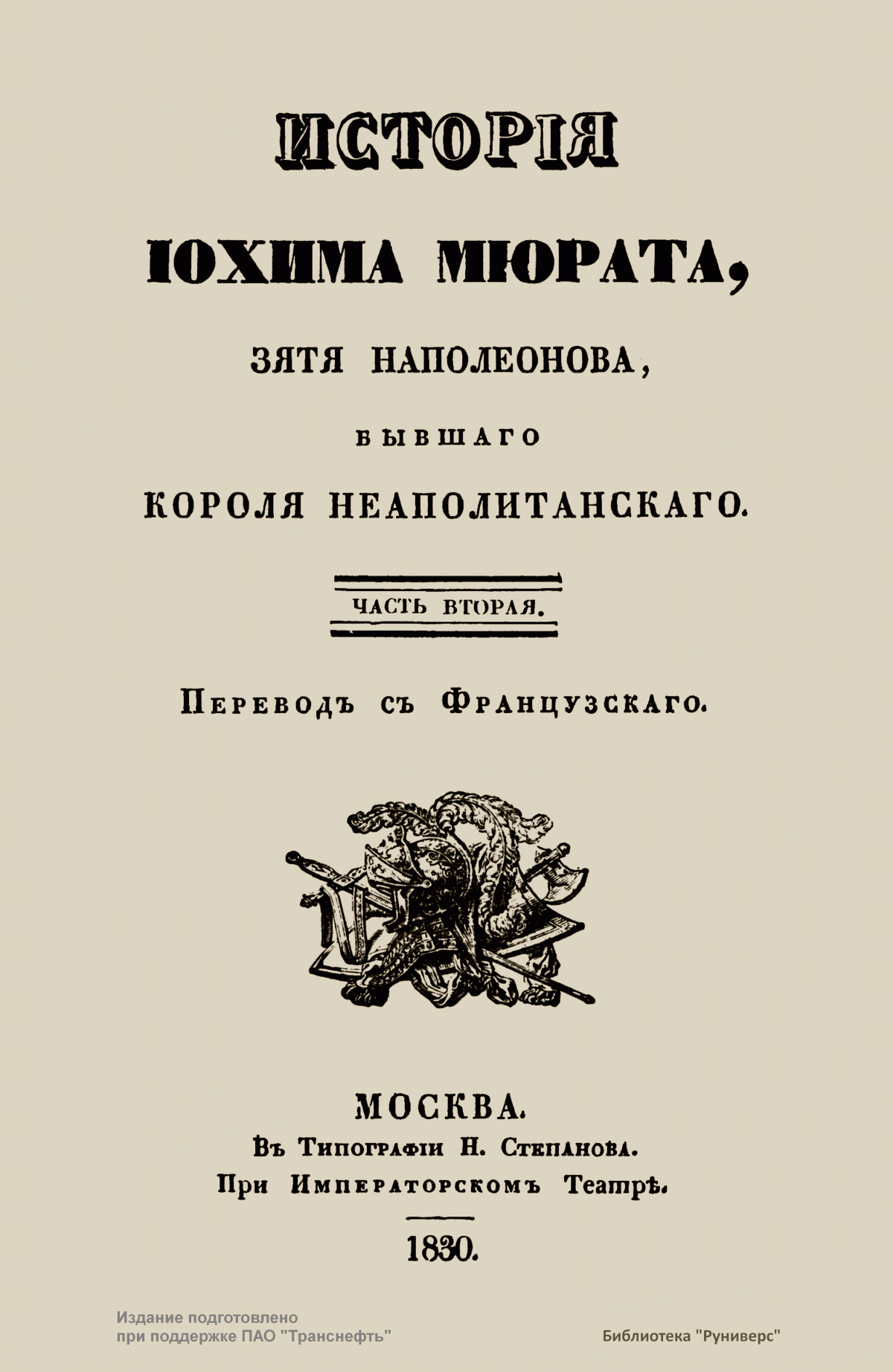 Исторiя Iохима Мюрата, зятя Наполеонова, бывшаго короля Неаполитанскаго. Часть вторая