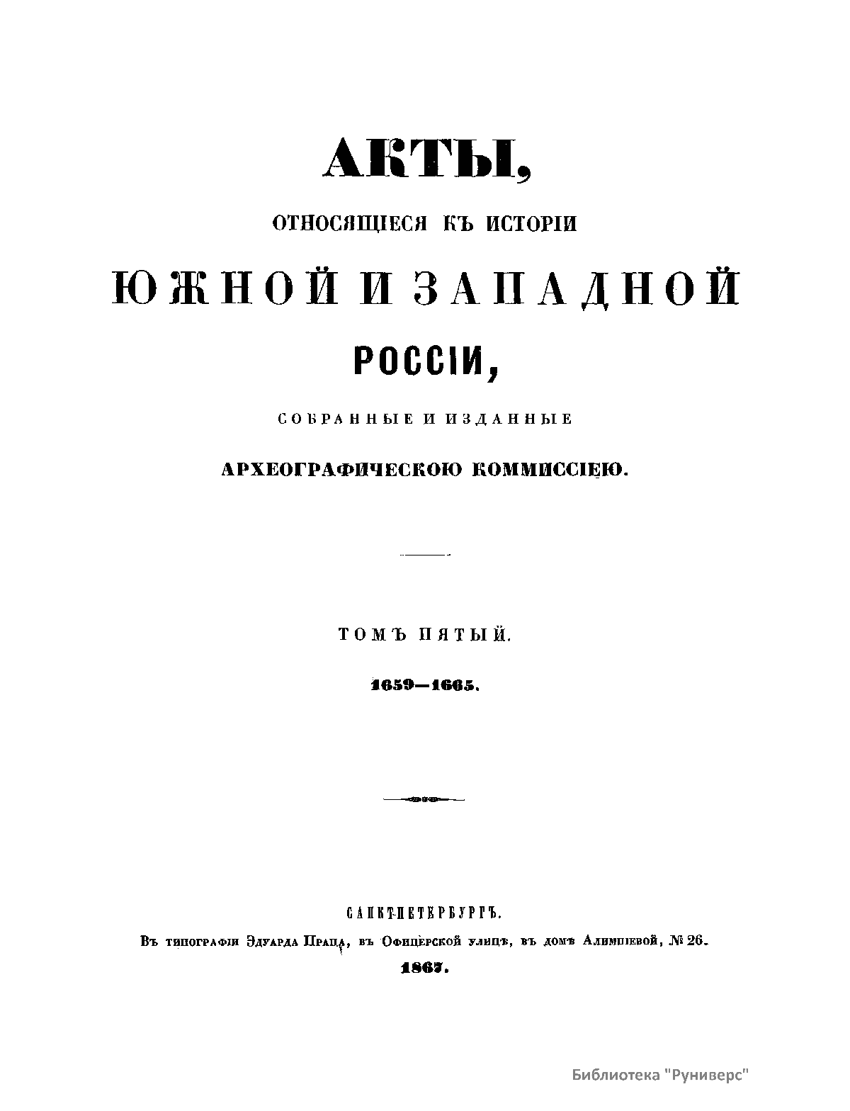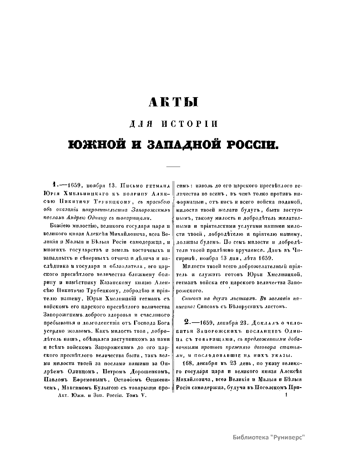 Акты, относящiеся къ исторiи южной и западной Россiи. Томъ пятый. 1659-1665