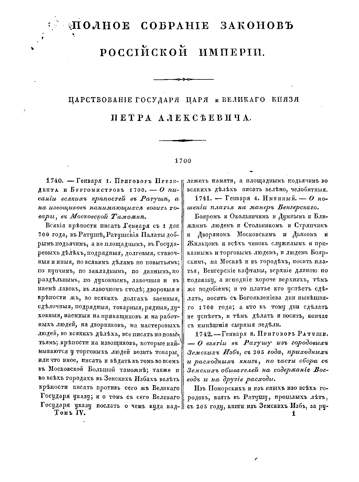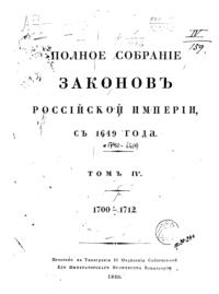 Полное собрание законов Российской Империи. Собрание Первое. Том IV