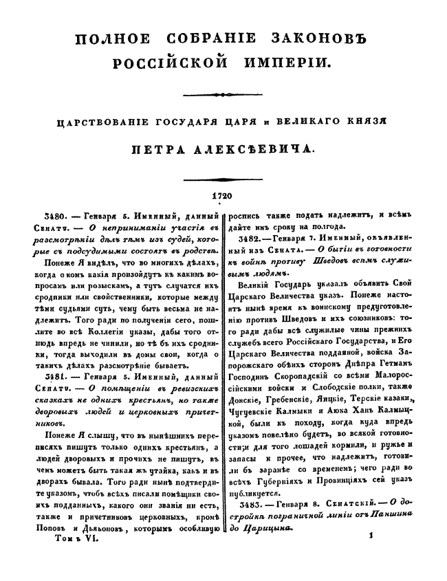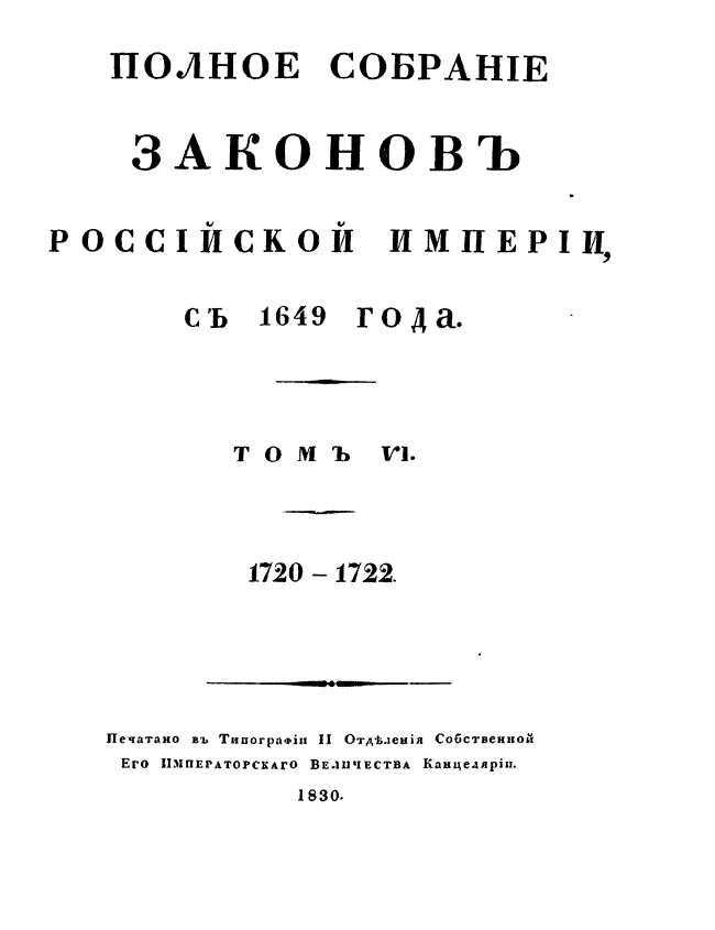 Полное собрание законов Российской Империи. Собрание Первое. Том VI