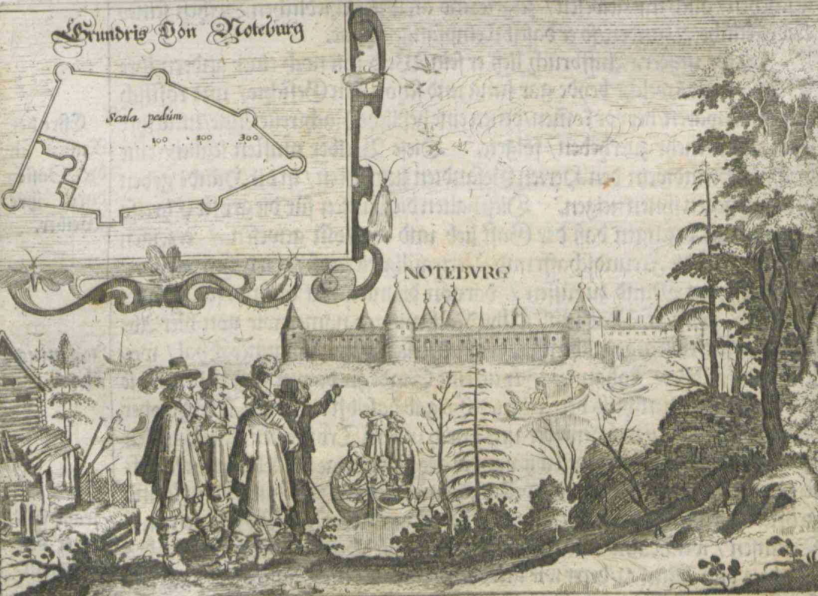 Нотебург (Орешек) в середине XVII в. Общий вид и план крепости