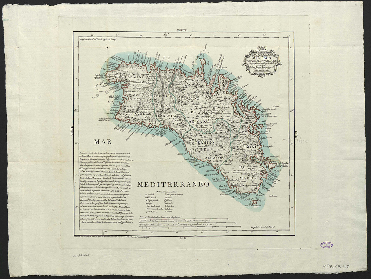 Карта острова Менорка, 1780 год