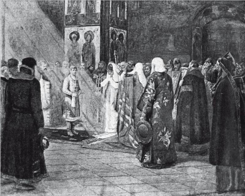 Вручение царского жезла Михаилу Федоровичу в Костромском Ипатьевском монастыре.