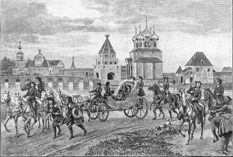 Выезд императора Петра II из села Измайлова на соколиную охоту.