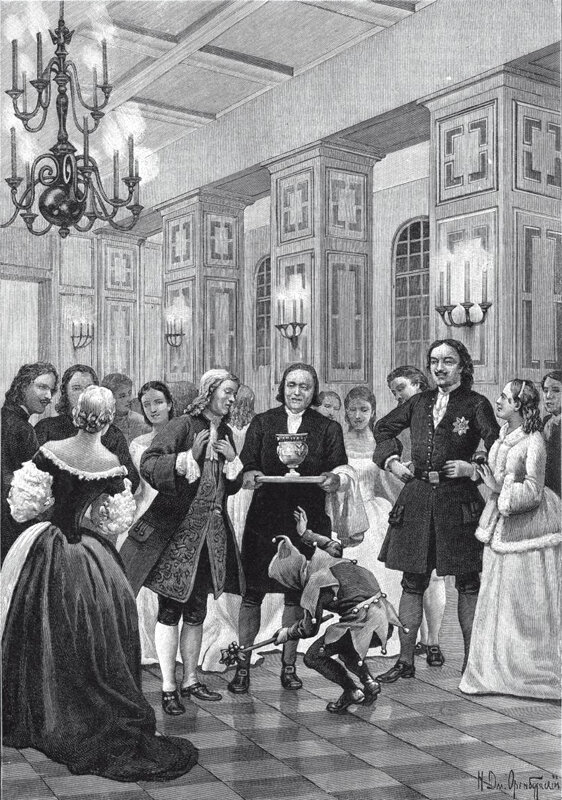 Начало общественных увеселений в России. Ассамблея при Петре Великом. Потчивание провинившегося гостя кубком «Большого орла».