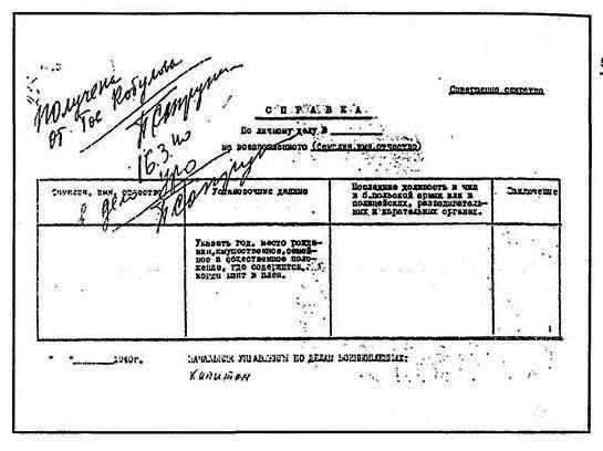 Форма справки на польского военнопленного