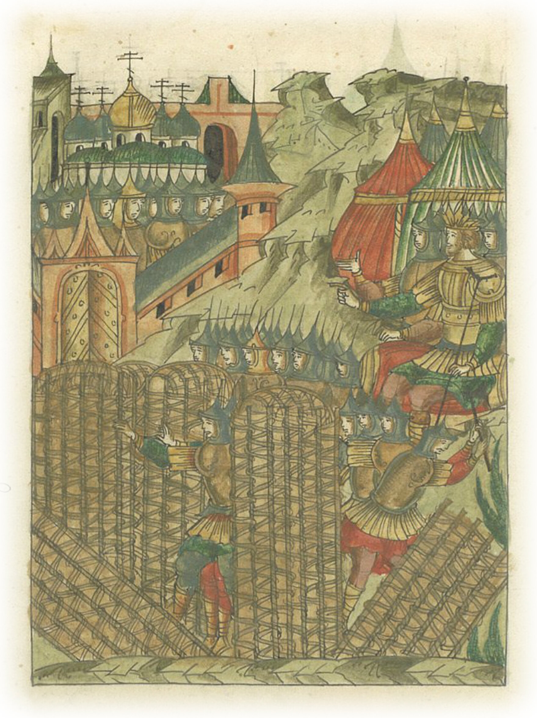 Языки говорят воеводам царя Ивана Васильевича, что магистр окопался большим рвом вокруг города Рындола, бьет из пушек и пищалей и приступает к Рындолу.