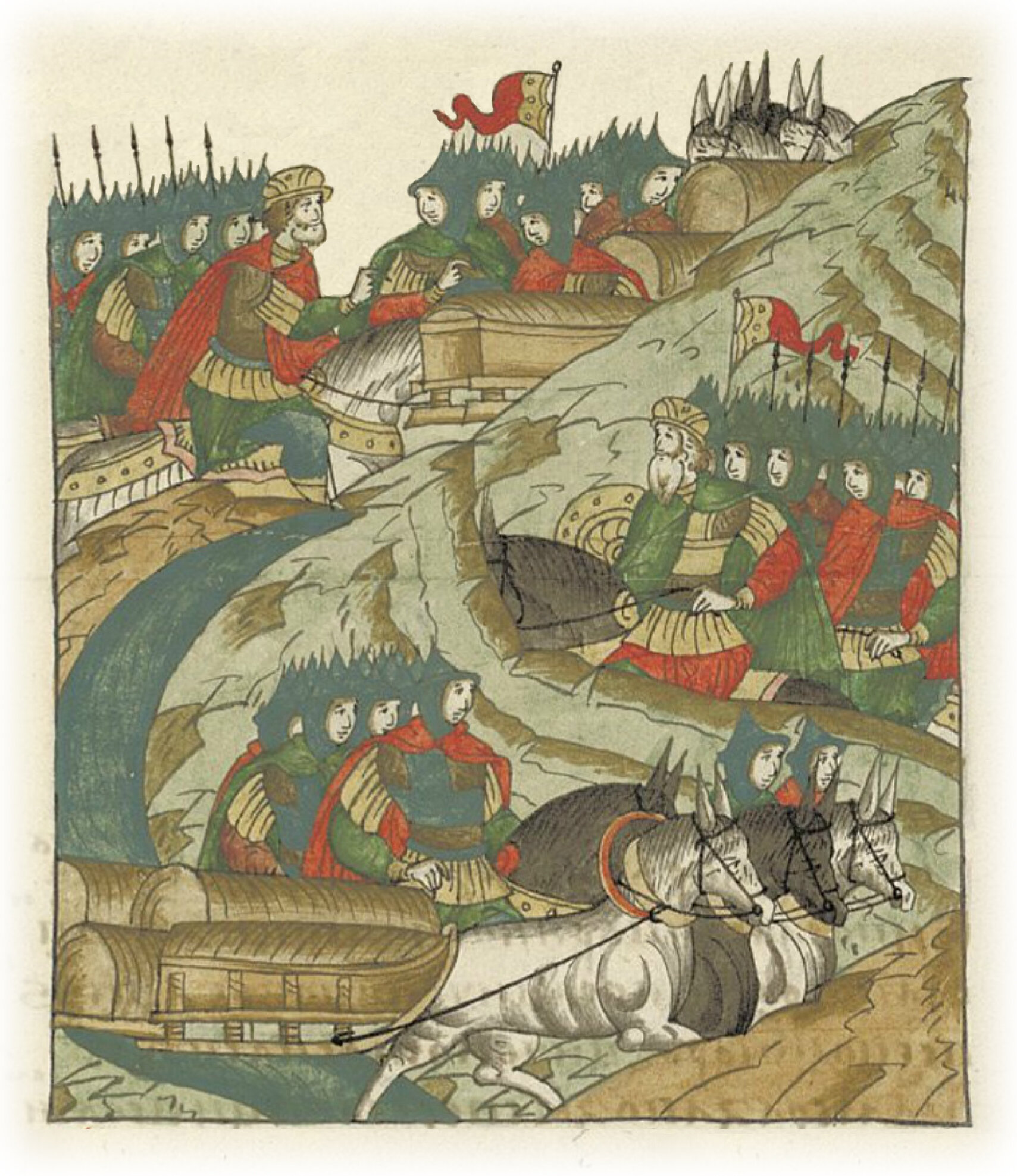 И так на Масляной неделе князь Всеволод Юрьевич начал собирать полки и снарядил возы, послал на ту сторону реки Колокши, где стоял князь Рязанский Глеб;