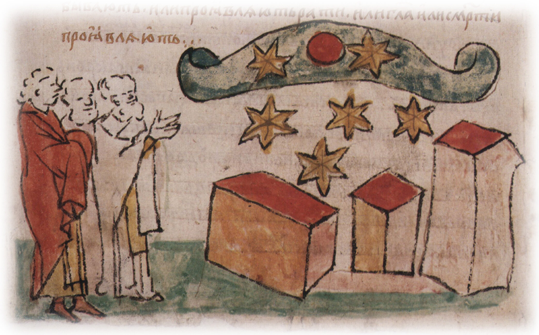 "Тое же зимы знаменья бысть многи на небеси, едино же от них скажем: бысть во един у нощь в 5 час нощи: потече небо все, и бысть черно, по земли же и по хоромом снег. Мнети же всем человеком зряче, аки кровь... течение звездное бысть на небеси, оторгаху бо ся звезды на землю".