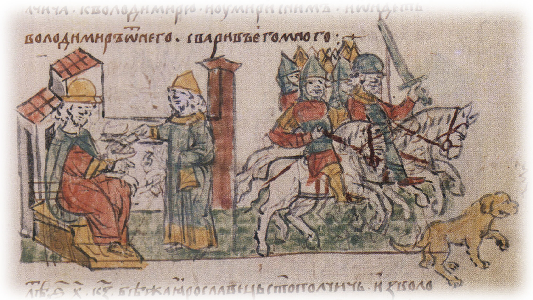 Примирение Владимира Всеволодовича Мономаха и Ярослава Святополковича Волынского; отъезд Владимира Мономаха из Владимира Волынского.