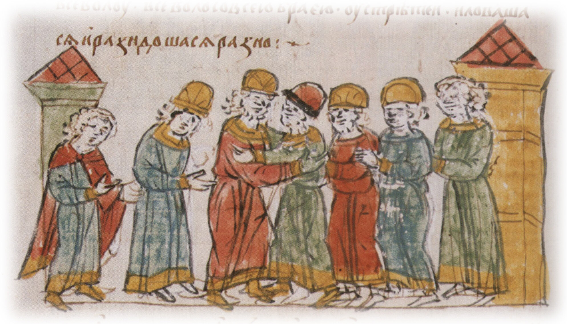 "И послуша его Всеволод, в том же дни сотвори мир. К вечеру выеха Володимир ко Всеволоду. Всеволод со всею братиею устрете и и ловашася, и разидошася разно".