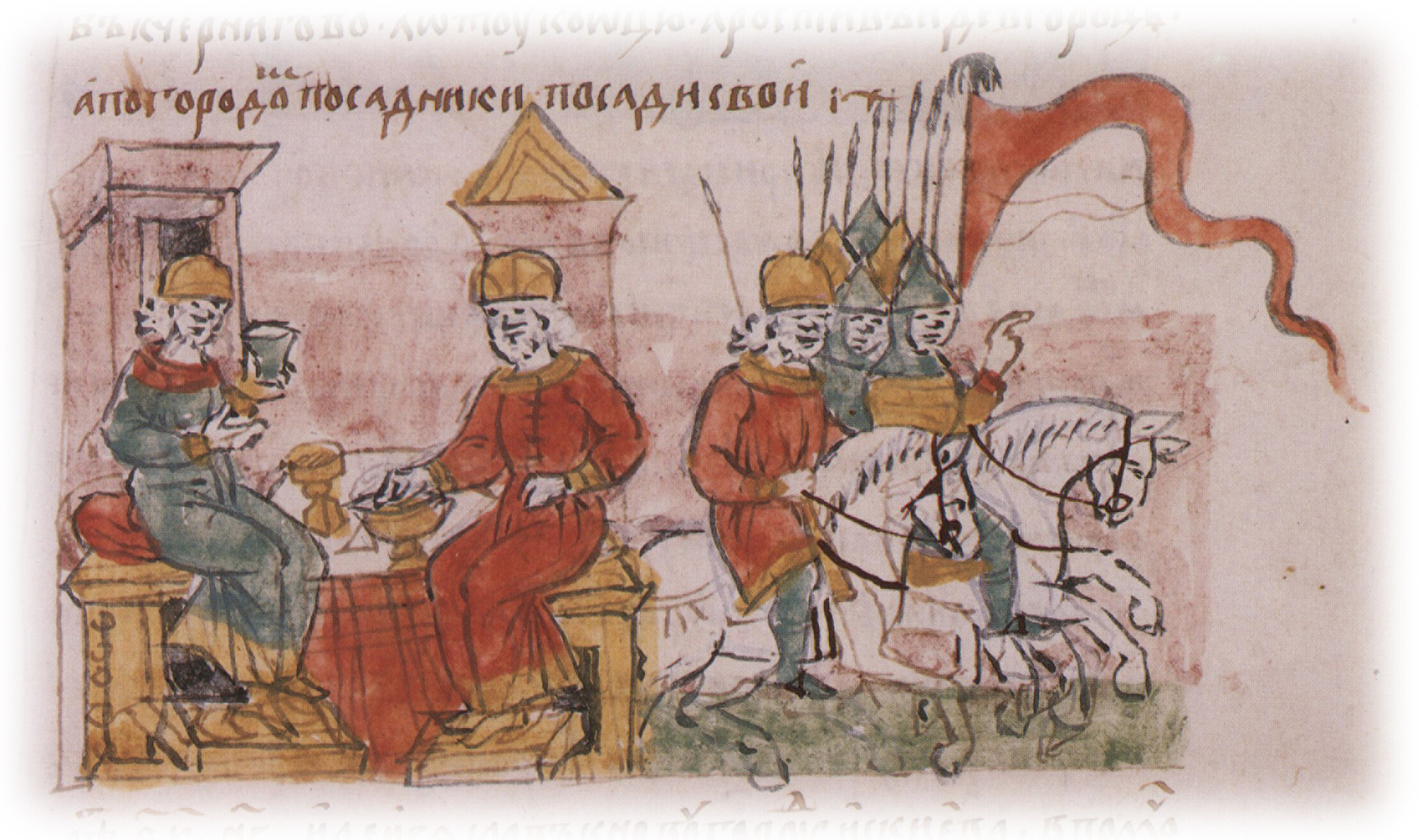 "И пришедшю ему, рад бысть Изяслав, и сотвори обед велик, и дасть ему Божскы и ины городы... А Ростислав иде в Городець, а по городом посадники посади свои".