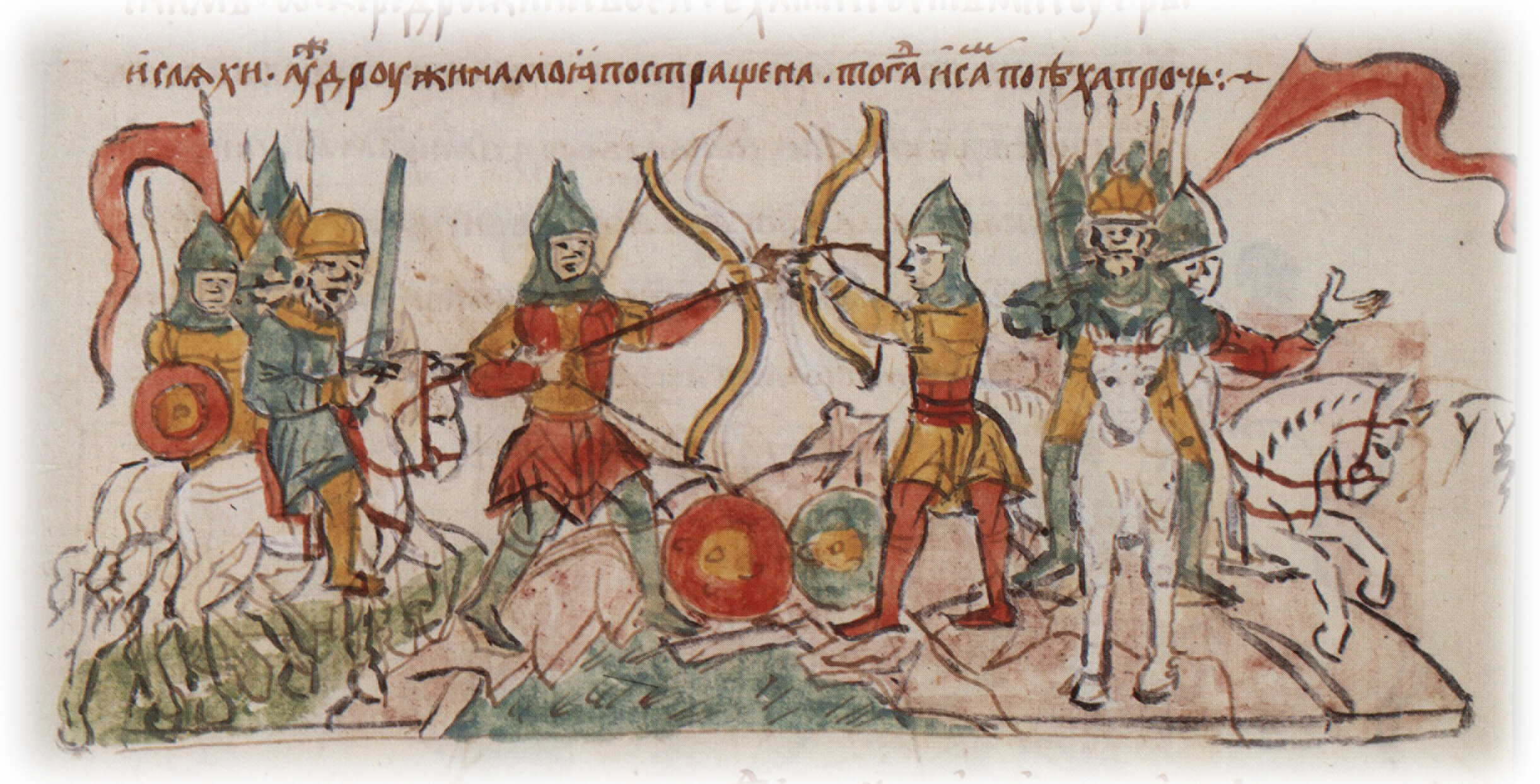 "Стрелцем стреляющимся о реку о Стугну, поча приступати Володимирке с силою своею... Тогда и сам поеха прочь".