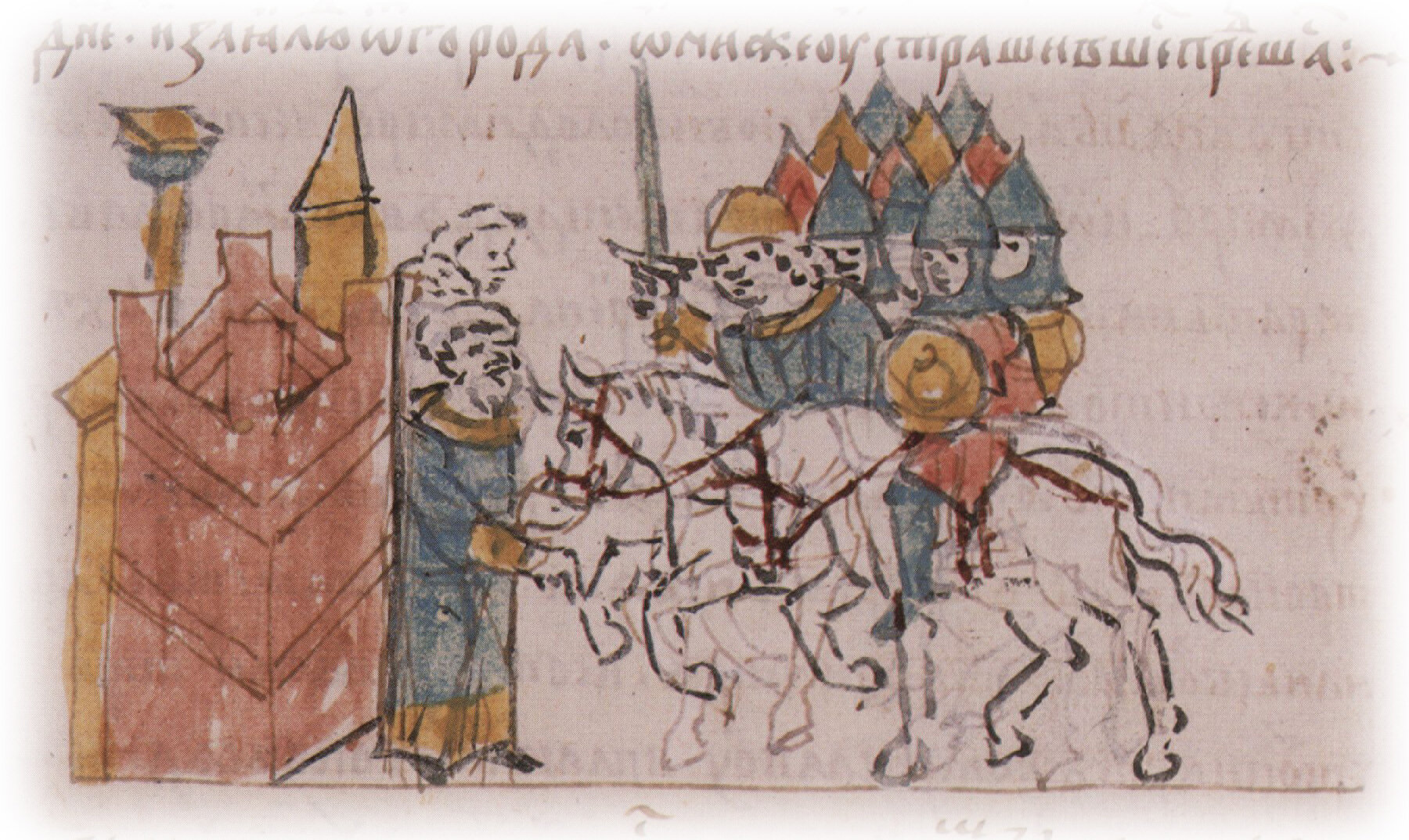 "Изяслав же ускорив пред братиею днем и зая люди от города, они же устрашившеся предашася".