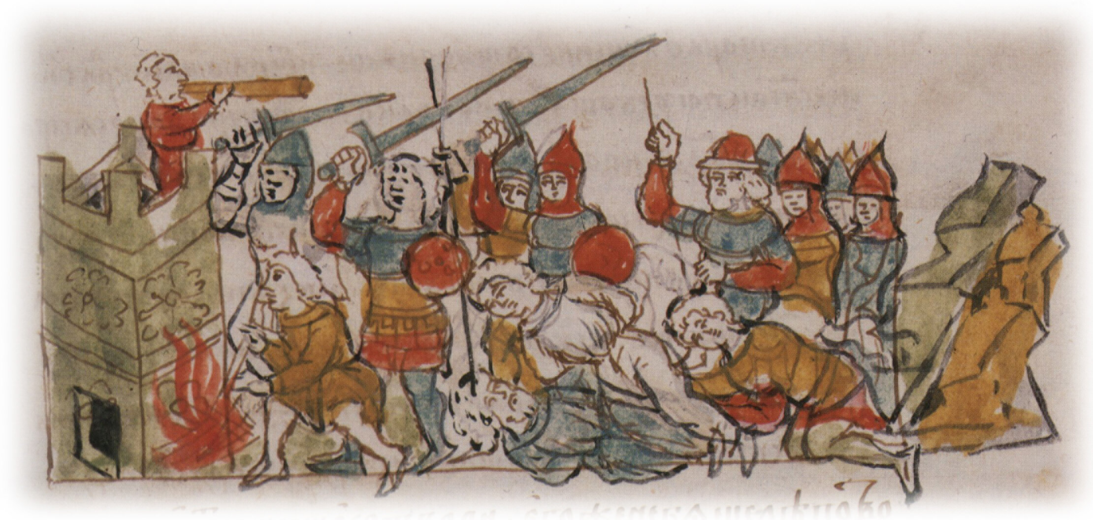 "...и взяста копьем град, и зажгоша огнем... И повеле Василко вся исъеечи, и сотвори мщение на людех неповинных, и пролия кровь неповину".