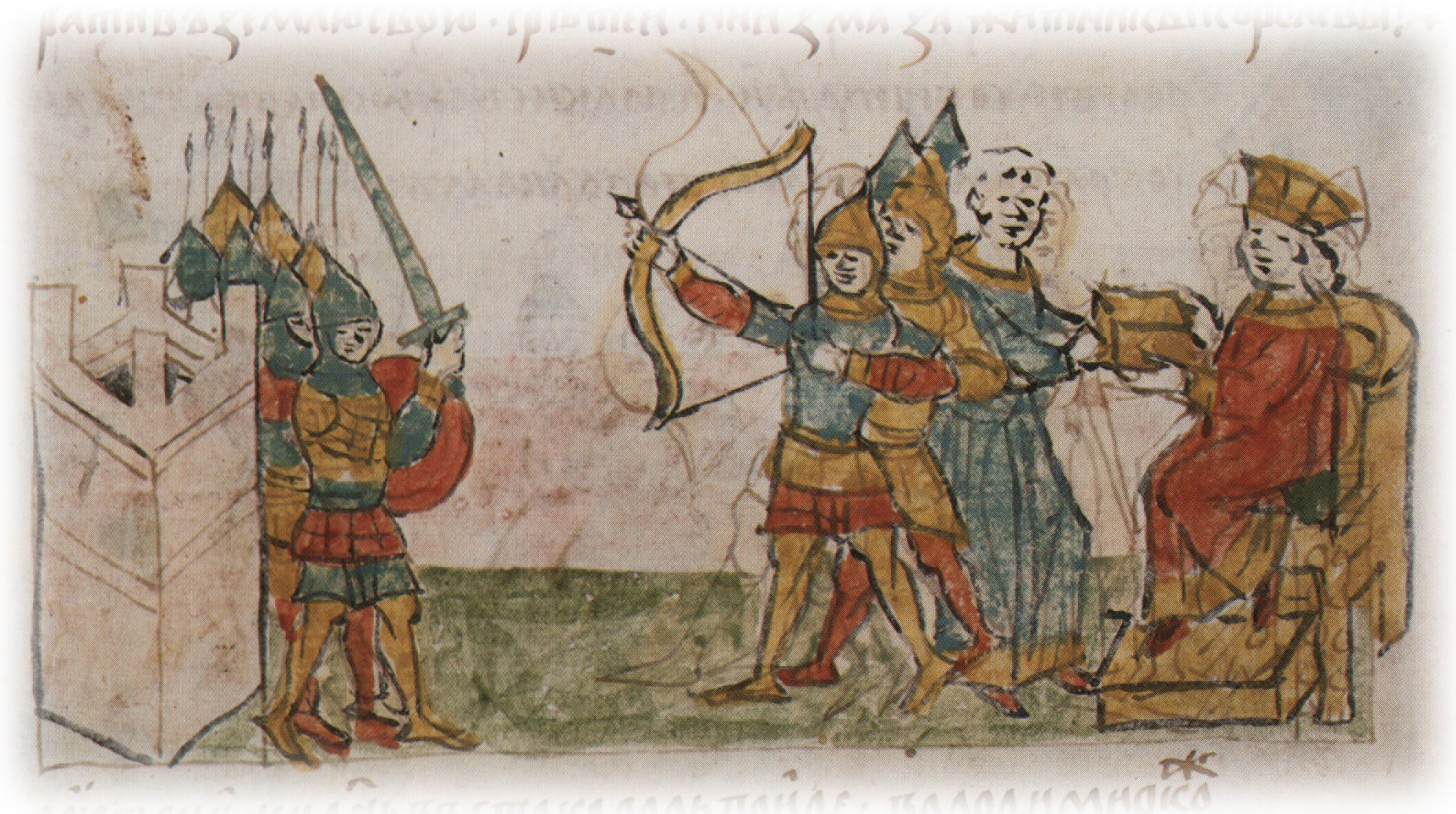 Кондаков Н. П. О миниатюрах Кенигсберского списка начальной летописи // Радзивиловская, или Кенигсбергская, летопись. СПб., 1902. Т. 2. Статьи о тексте и миниатюрах летописи. с. 126; Сизов В. И. Миниатюры Кенигсбергской летописи // ИОРЯС. СПб., 1905. Т. 10. Кн. 1. с. 40.