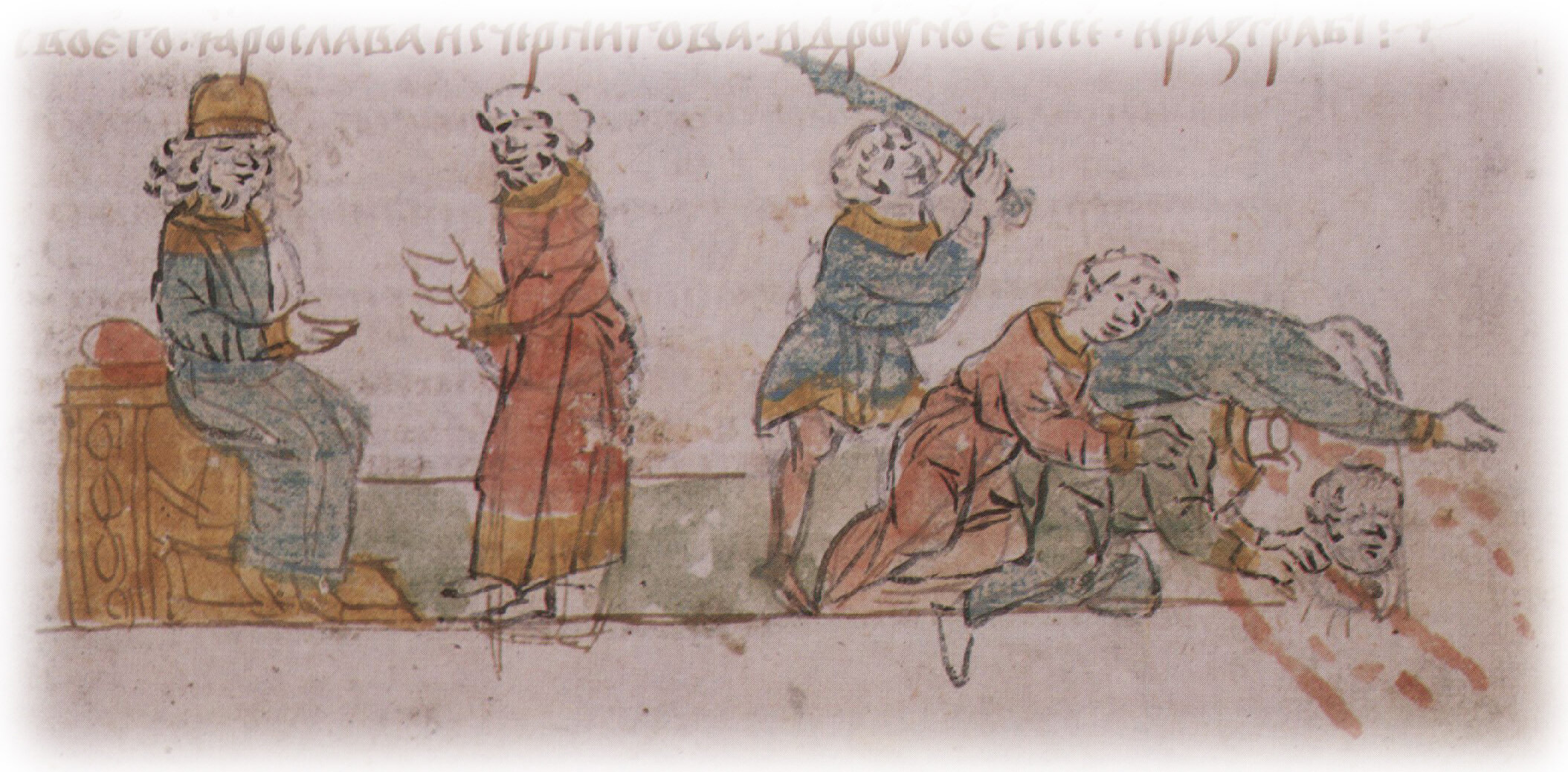 "В лето 6635. ...выгна Олгович Всеволода стрыа своего Ярослава ис Чернигова, и дружину его иссече и разграби".
