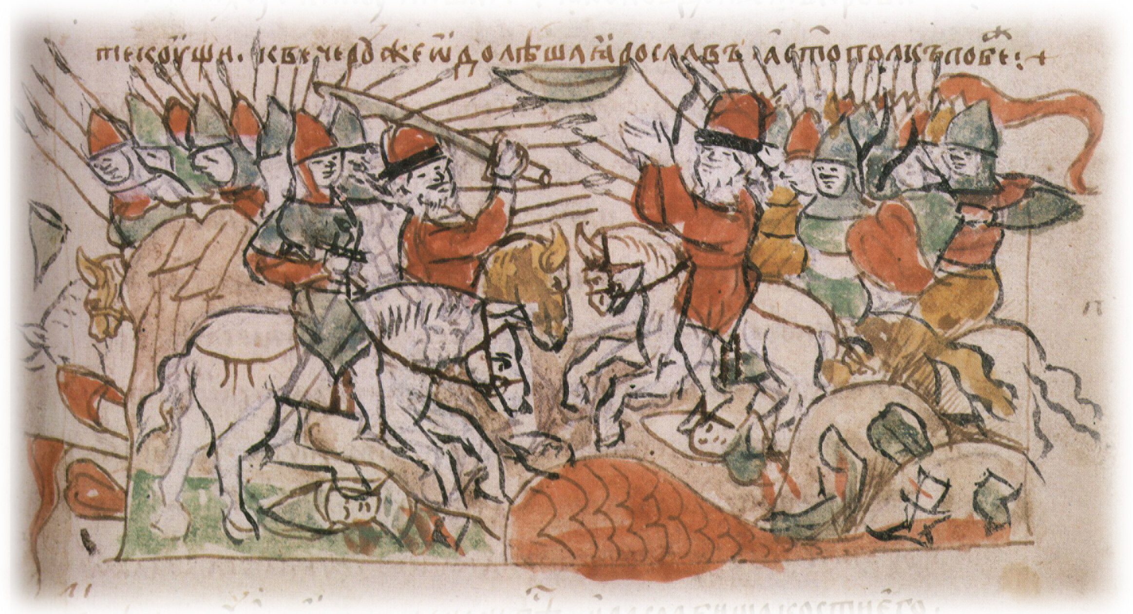 "В лето 6527. И приде Святополк с печенегы в силе тяшцей, и Ярослав собра множество воя, и изыде противу ему на Олото... Бе же пяток тогда... И бысть сеча зла, такова не бывала в Руси... яко по удольем крови текущи. К вечеру же одолеша Ярослав...".